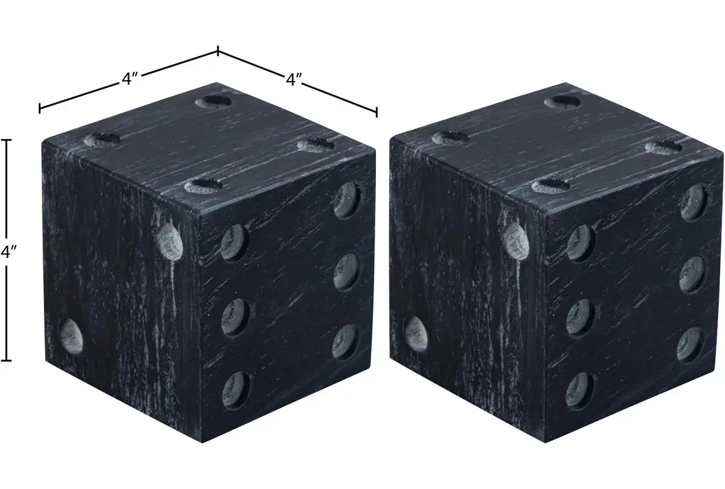 Add a touch of modern flair to your home with the 4" X 4" Black Marble Dice Table Decor. These striking pieces feature a contemporary design that will complement any room. The sleek black marble adds a sophisticated and chic element to your décor.