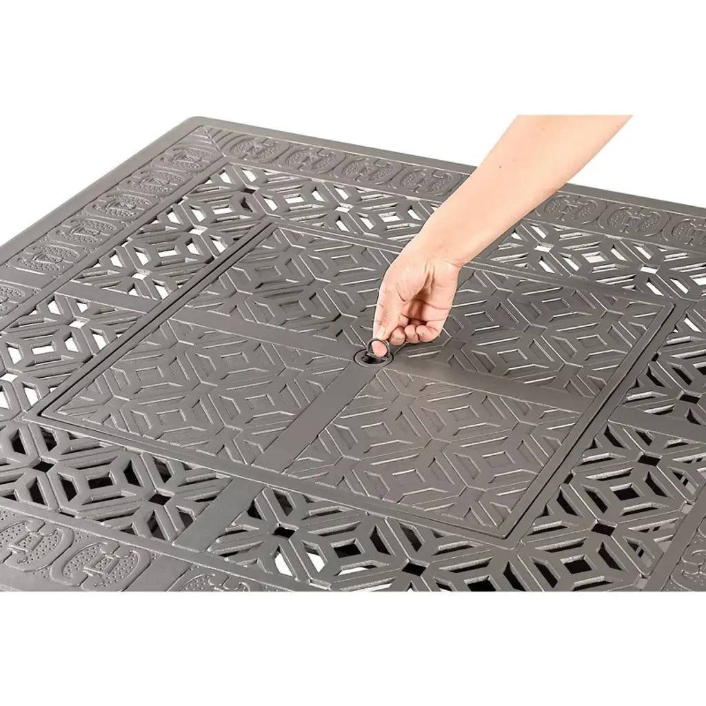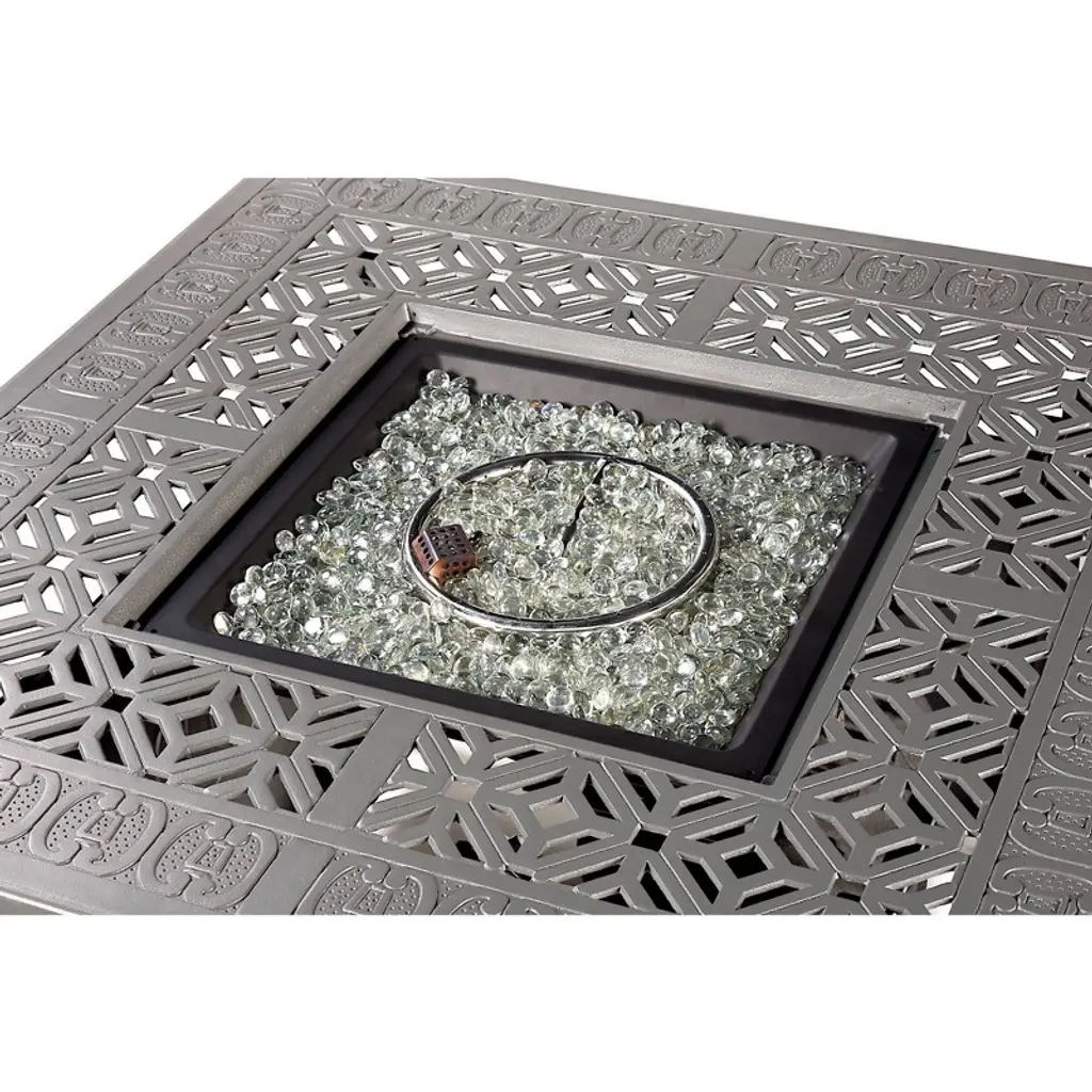 42" Square Aluminum 55000 Btus Propane Ornate Fire Table With 2 Covers - Gray - Oakland Living