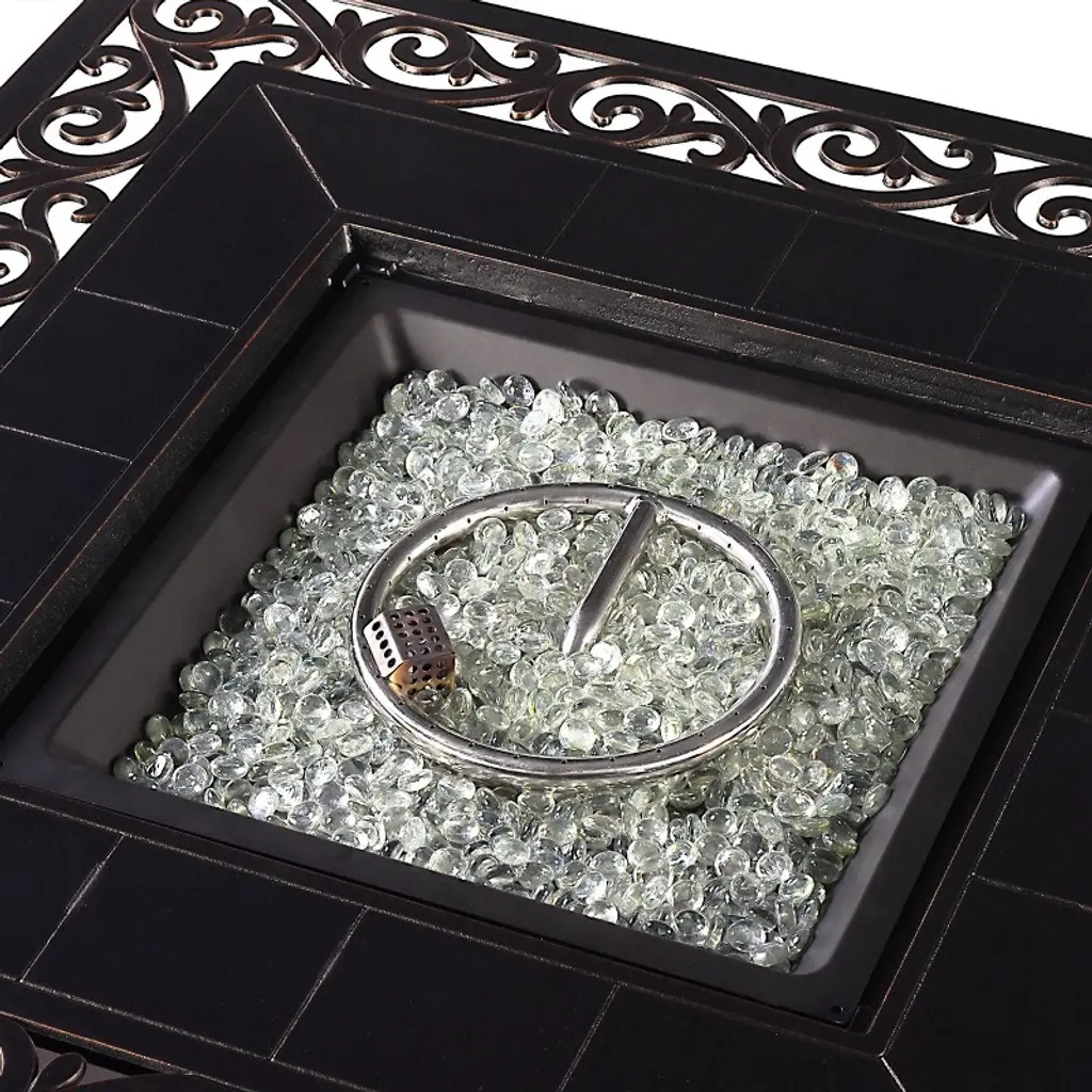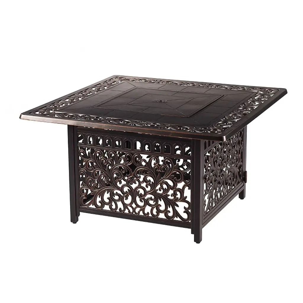 42" Square Aluminum Outdoor Propane Traditional Fire Table With Propane Tank & Table Covers - Oakland Living: Weather-resistant, 55000 Btu