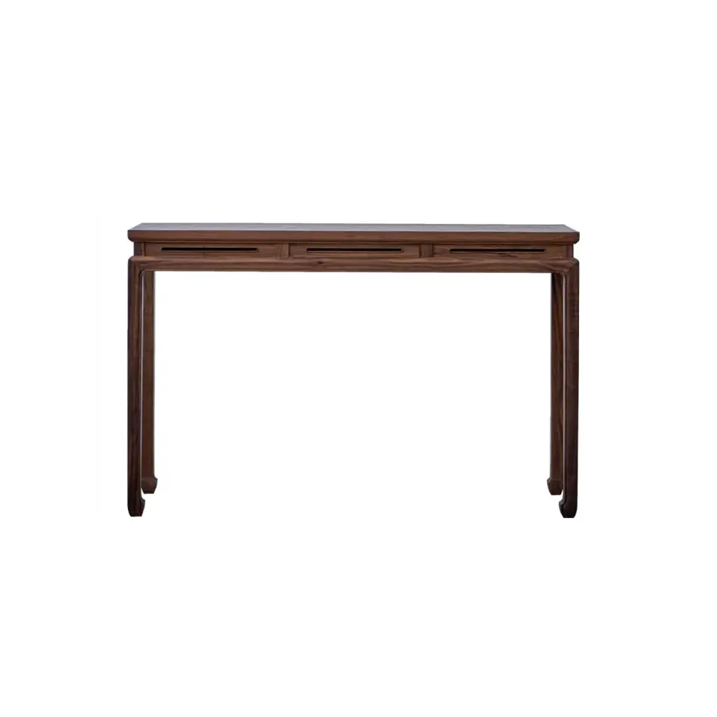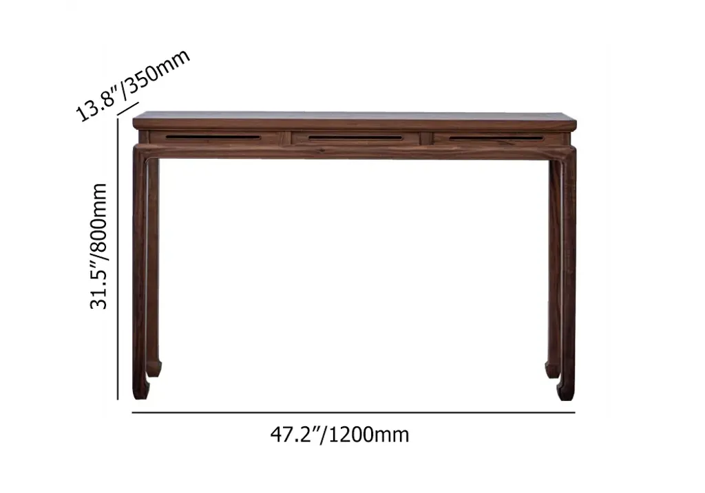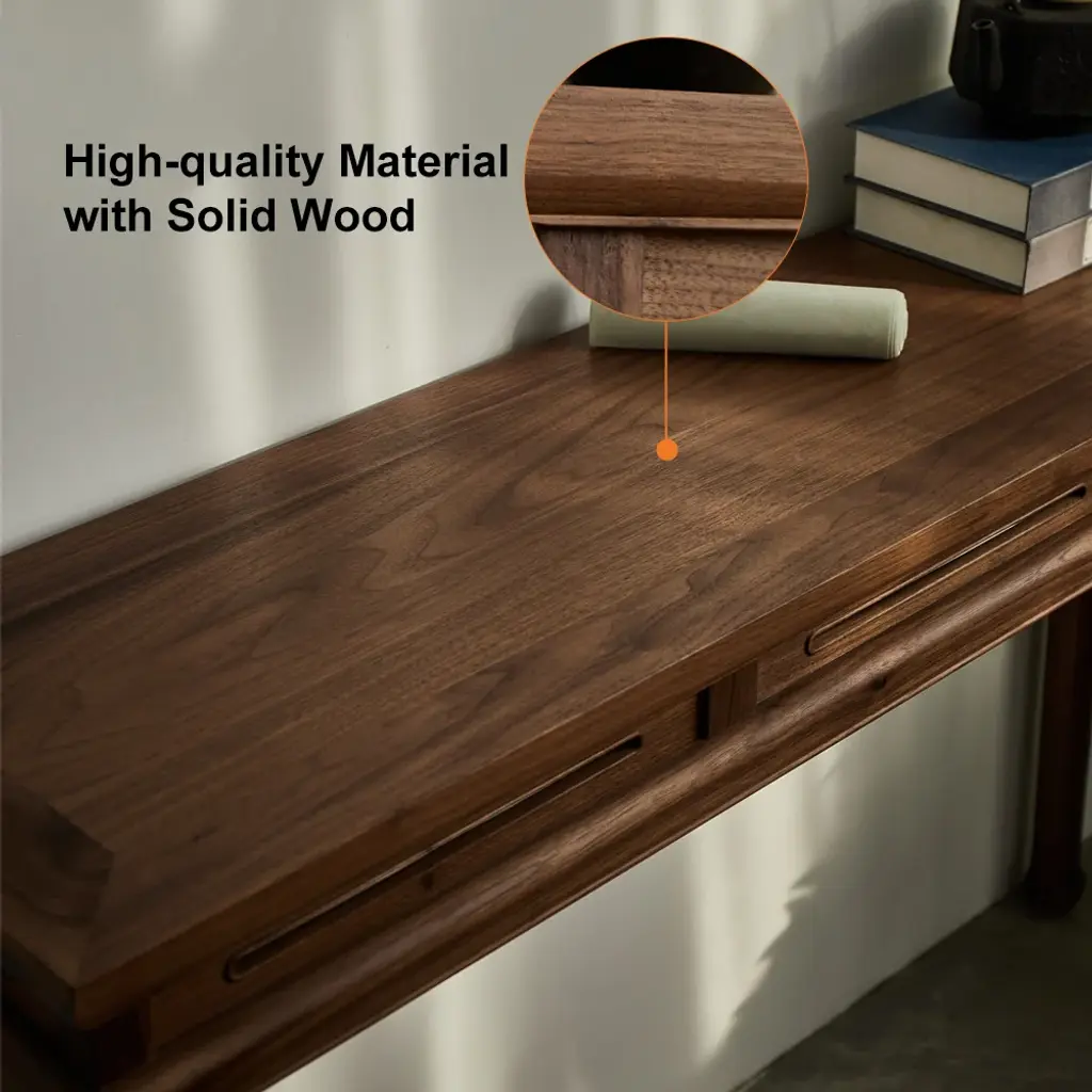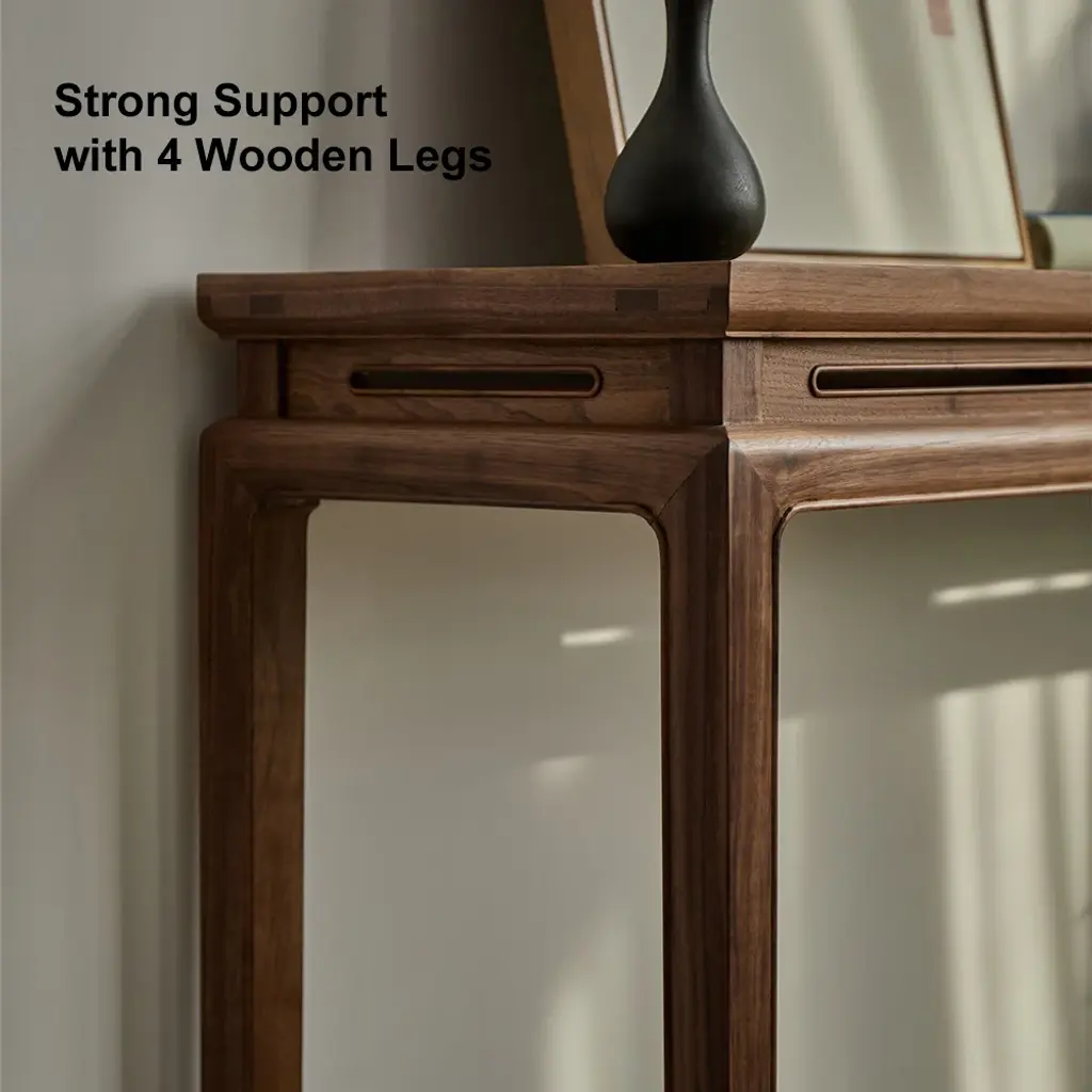 Transform your home decor with our top-rated Solid Wood Walnut Console Table - the ultimate statement piece for any space. Its mid-century modern style and sleek design are sure to impress, while its solid wood construction ensures durability and longevity. Crafted with exceptional attention to detail, this console table boasts a stunning and sophisticated design that will elevate any room in your home. Perfect for displaying your favorite decorative items or creating a focal point in your entryway or living room, it's the perfect combination of style and functionality. Built to last, this console table is crafted from high-quality solid wood, ensuring that it will provide a functional surface for years to come. Its sturdy construction not only adds a touch of sophistication to your home but also provides the perfect solution for your display needs.