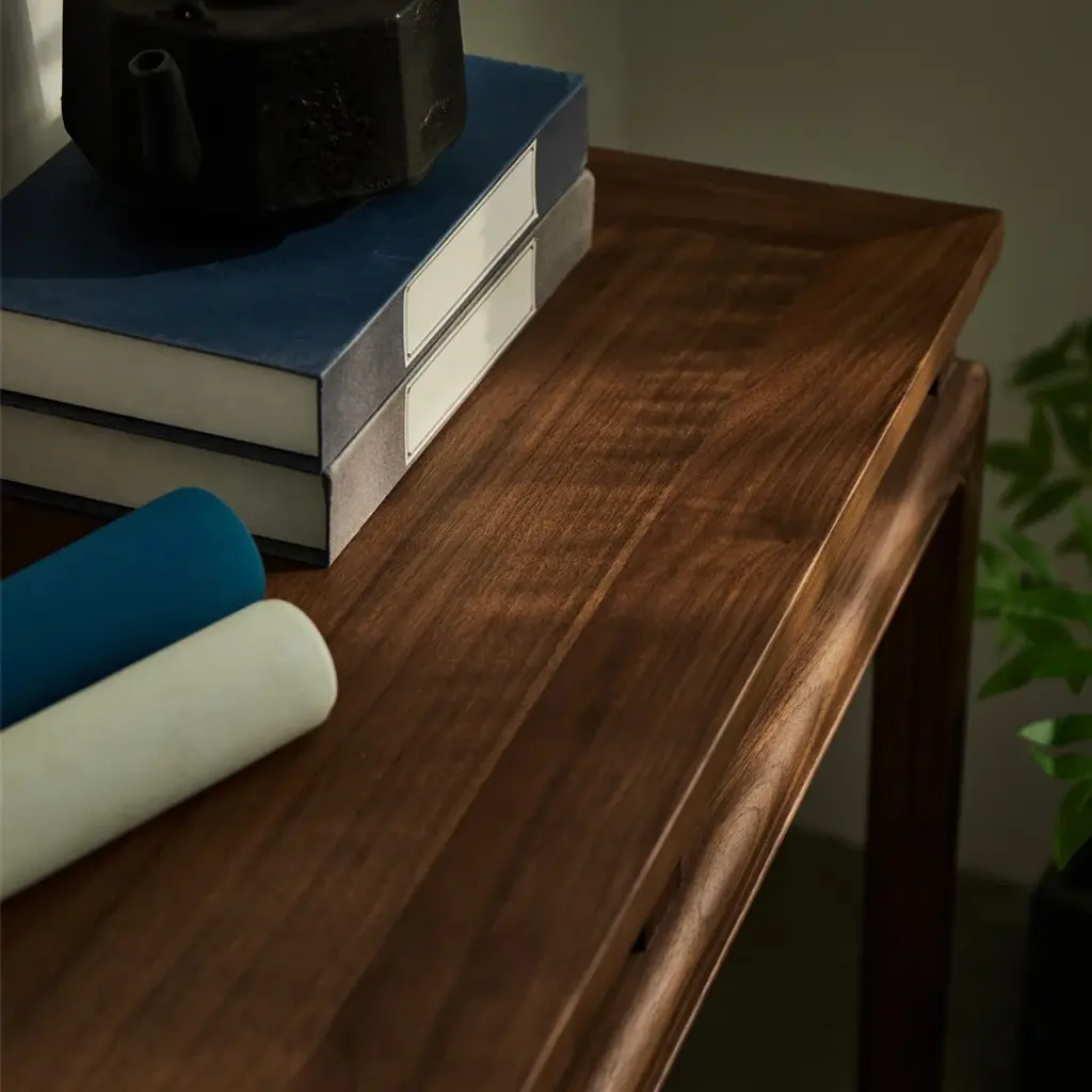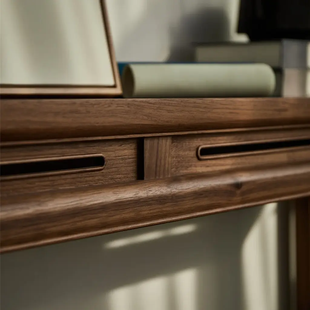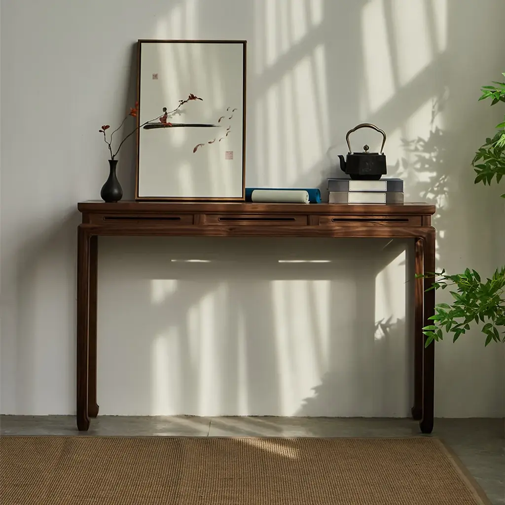 Transform your home decor with our top-rated Solid Wood Walnut Console Table - the ultimate statement piece for any space. Its mid-century modern style and sleek design are sure to impress, while its solid wood construction ensures durability and longevity. Crafted with exceptional attention to detail, this console table boasts a stunning and sophisticated design that will elevate any room in your home. Perfect for displaying your favorite decorative items or creating a focal point in your entryway or living room, it's the perfect combination of style and functionality. Built to last, this console table is crafted from high-quality solid wood, ensuring that it will provide a functional surface for years to come. Its sturdy construction not only adds a touch of sophistication to your home but also provides the perfect solution for your display needs.