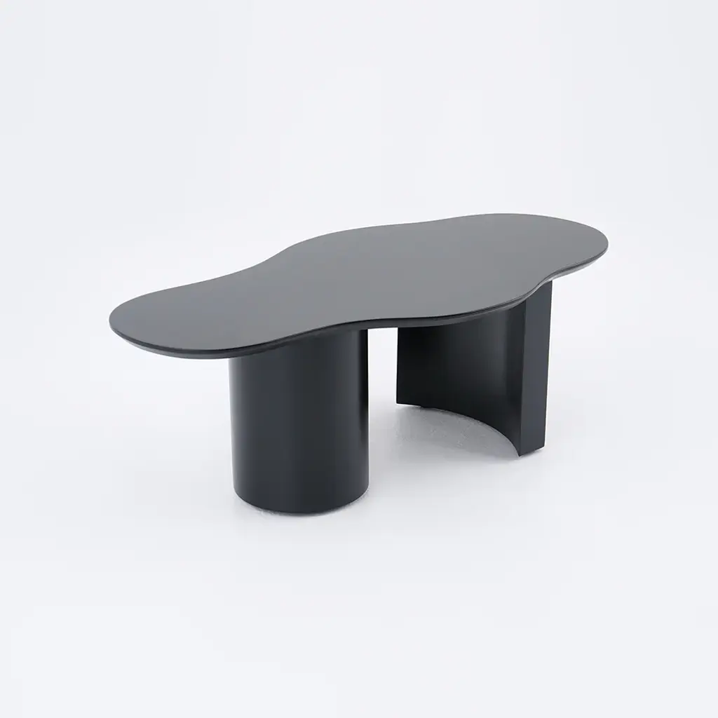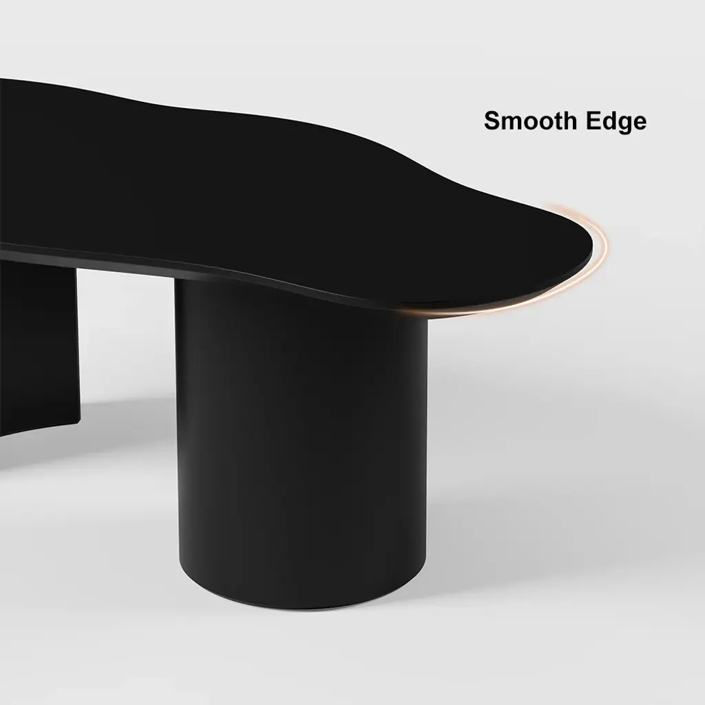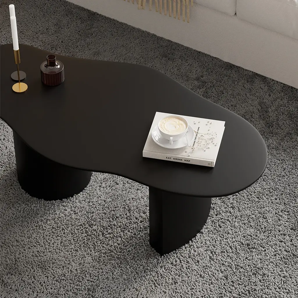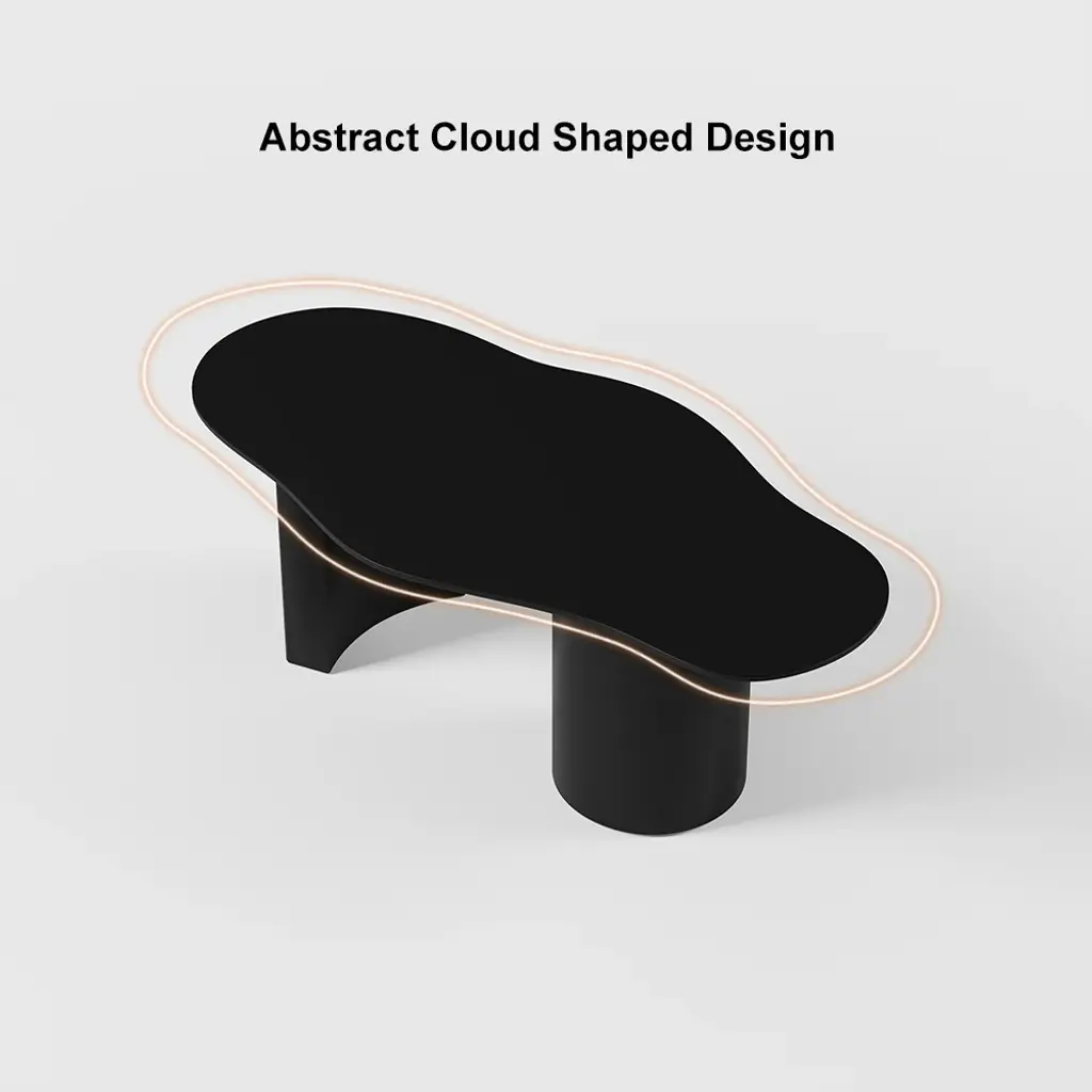 This 47" Japandi coffee table features a unique cloud-shaped design in elegant black. The smooth-edged MDF top offers ample space for books and laptops, while the double pedestal base ensures stability. Easy to clean and perfect for creating a zen-inspired living space.