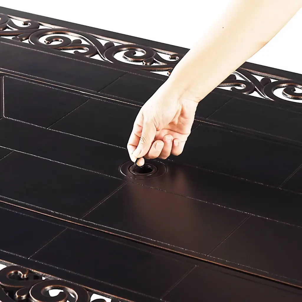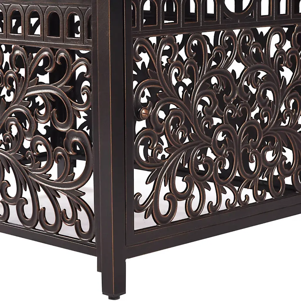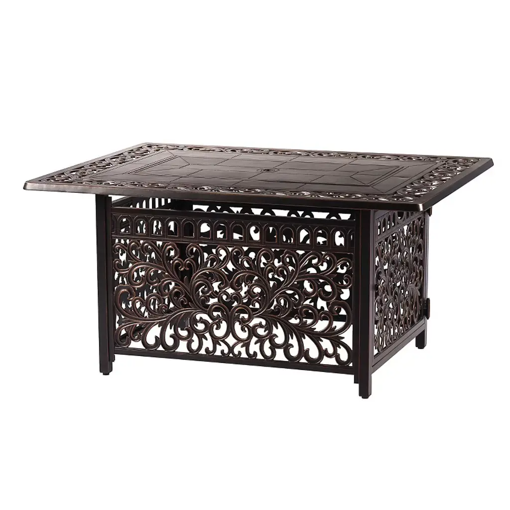 Elevate your outdoor space with the Rectangular 48-Inch Aluminum Black Fire Table, a perfect addition to your patio, deck, or backyard. This stylish and functional fire table combines elegance and warmth, providing an inviting focal point for your outdoor living area.Key Features:Stylish Design: The fire table boasts a clean and modern design with a black aluminum antique copper finish. Its sleek appearance adds a touch of sophistication to any outdoor setting, making it an attractive centerpiece.Durable Construction: Crafted from solid aluminum, this fire table is built to withstand the elements and provide years of reliable use. The durable materials ensure it won't rust or corrode, even in outdoor environments.Powerful Heat: Enjoy the warmth and ambiance of a classic fire with the 57,000 BTU stainless steel burner. The integrated ignition system makes it easy to start a fire, allowing you to create a cozy atmosphere without the hassle of tending to ashes.Safety and Convenience: This fire table comes with clear fire glass, which not only enhances the visual appeal but also ensures safety by preventing embers from escaping. It also includes a table lid to cover the fire pit when not in use, a propane tank cover for a clean look, and a protective table fabric cover to shield it from the elements.Generous Size: With dimensions of 48 inches in length, 36 inches in width, and 24.5 inches in height, this fire table offers ample space for you and your guests to gather around and enjoy the flames.Transform your outdoor living space into a cozy and inviting haven with the Rectangular 48-Inch Aluminum Black Fire Table. Whether you're hosting a gathering or simply relaxing outdoors, this fire table will provide warmth, ambiance, and style to your outdoor entertainment area. Enjoy the beauty of a flickering fire without the mess, and make memorable moments with friends and family around this elegant fire table. Upgrade your outdoor experience today with this stunning addition.