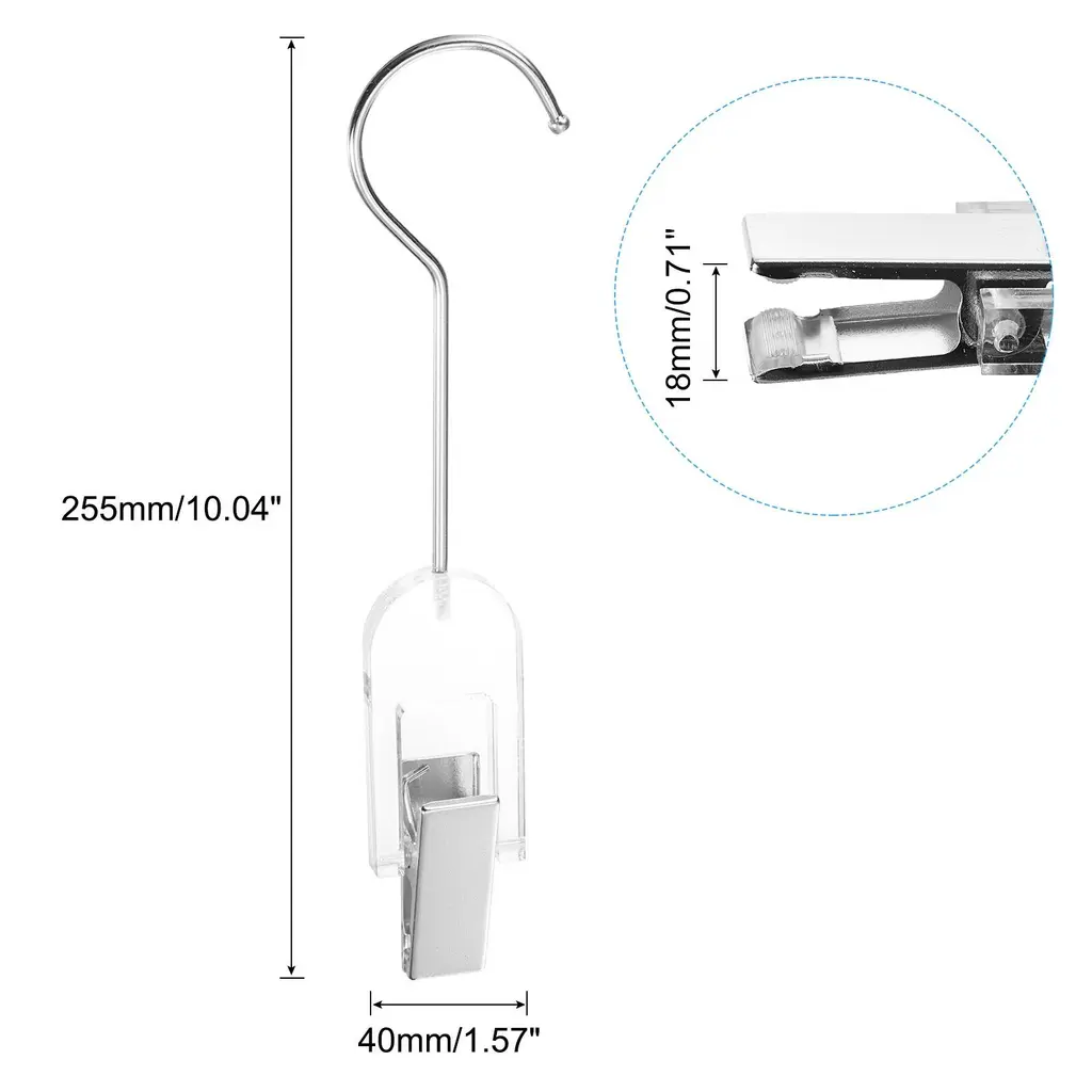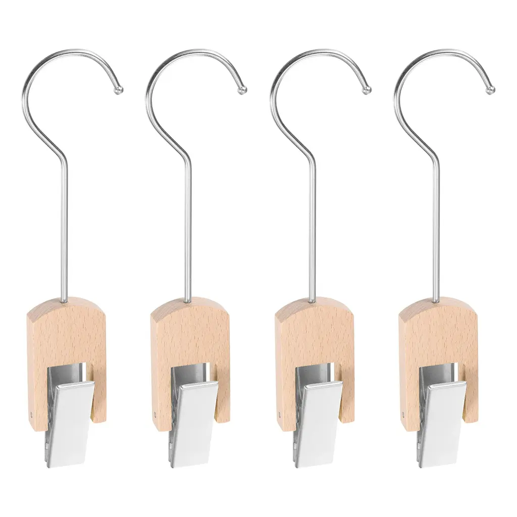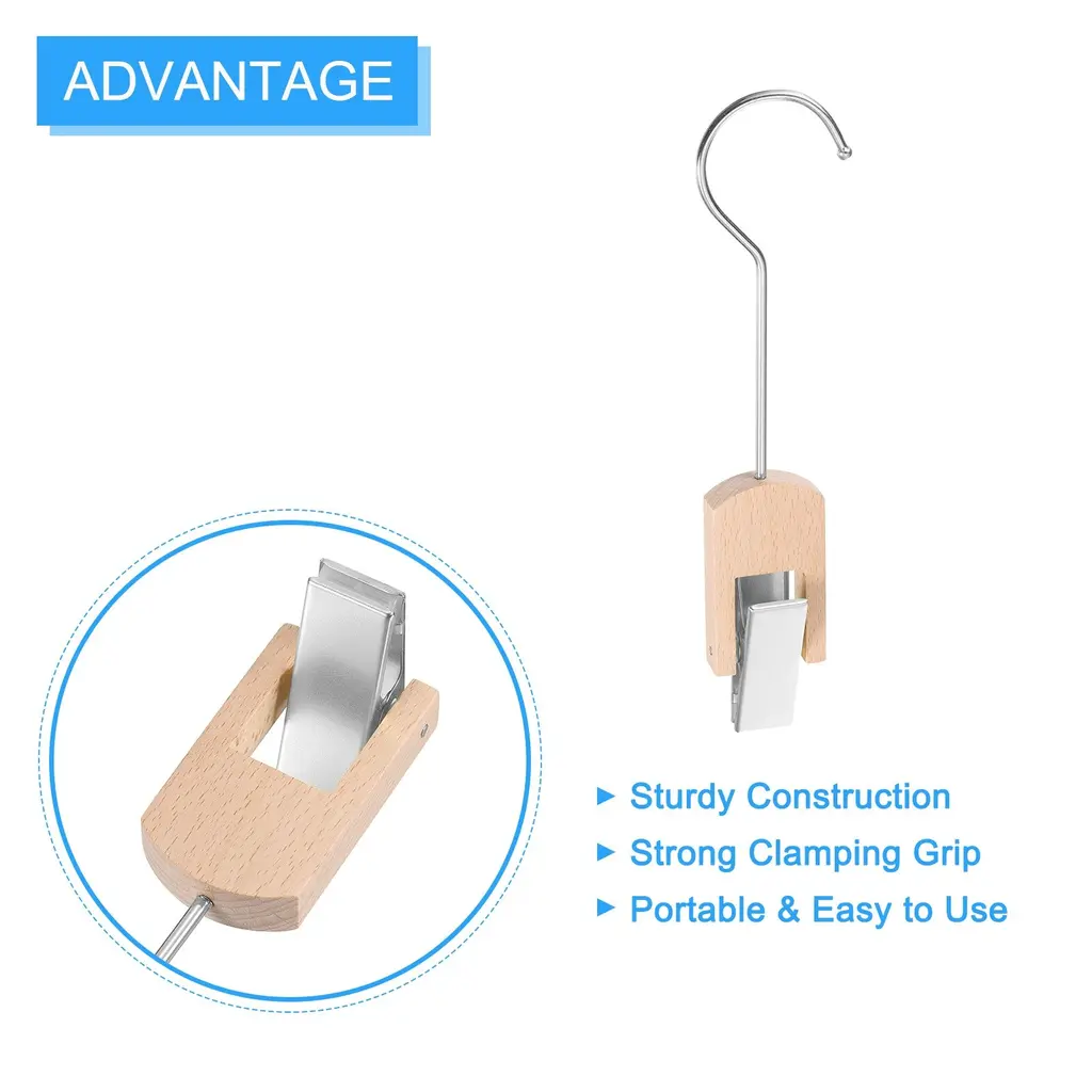 Description:Sturdy Construction - Our hanging clips are made of alloy and wood, with a smooth surface, not easy to rust, bend or break, and much stronger and more durable than plastic hanger clips.Strong Clamping Grip - The clothes hanger with a super-strong clamping force keep the hanging items securely hold to the hanger and not easy to fall off when shaken in the wind.Space-saving - The Hanging hook with the ability to hang items vertically or horizontally offers an effective space-saving solution. Helps to maximize storage areas by utilizing vertical spaces efficiently, turning unused areas into functional storage.Easy to Use - The portable hanging clip is designed for effortless installation, without punching. Hang it wherever you want, such as rods, pipes, shelves, or hangers. The hook angle can be rotated according to your needs.Multiple Applications - The single hanger clip is commonly used in the home, closet, bathroom, balcony, office, shop, and even outdoors. The hook can be utilized for hanging and organizing various items, including clothing, pants, jeans, socks, scarves, hats, bags, towels, and more.Specification:Material: Alloy, WoodColor: SilverOverall Size: 190mm x 40mm x 14mm/7.48" x 1.57" x 0.55"(L*W*T)Clip Length: 60mm/2.36"Clip Open Width: 18mm/0.71"Package Content:4pcs x Hanging Clips