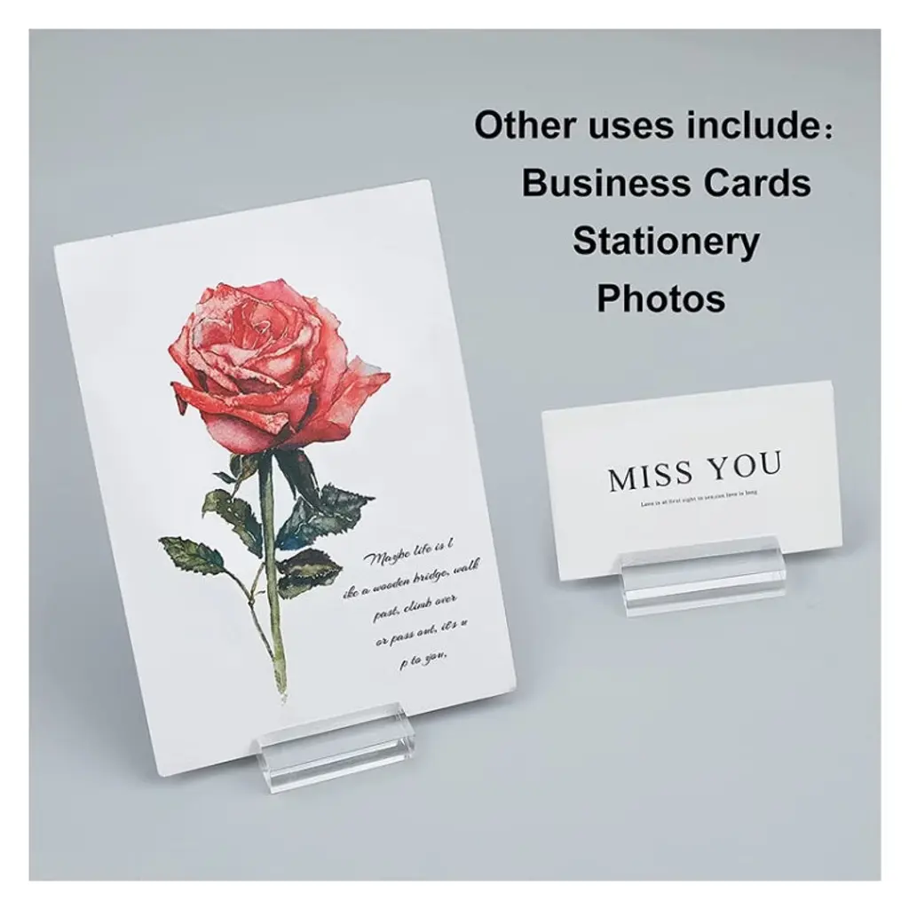 The "Acrylic Place Card Holders Table Numbers Postcard Picture Display Stand (50x30x10mm)" is a versatile and elegant solution for organizing and displaying place cards, table numbers, postcards, or small pictures. Made from clear acrylic, these holders are durable, lightweight, and visually appealing, making them perfect for weddings, events, or home decor. Their compact size and modern design add a touch of sophistication to any setting.