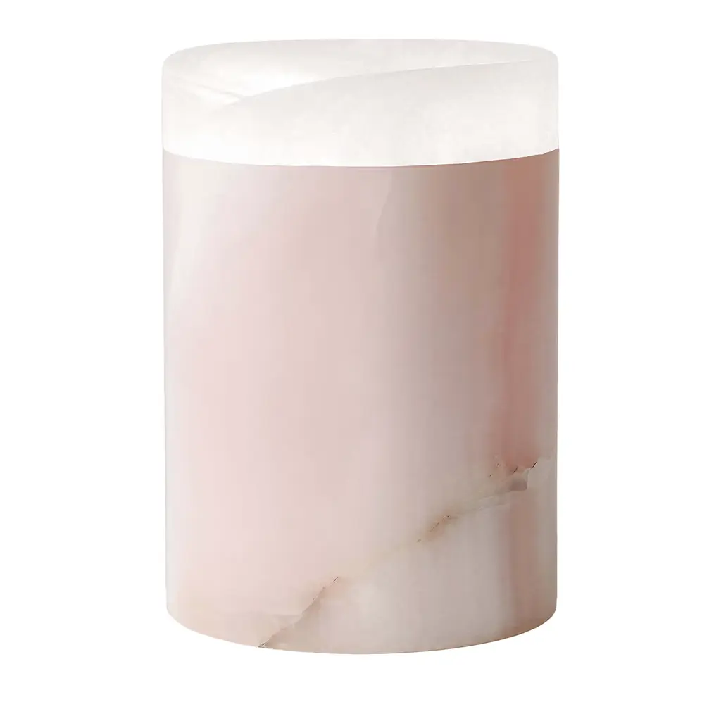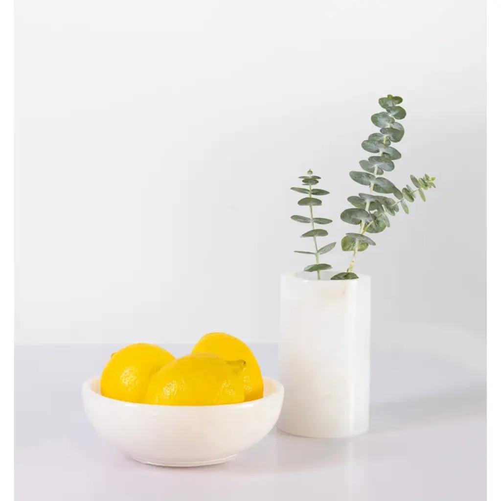 Designed to resemble clear quartz. this tabletop vase is a versatile addition to any space in your home. Crafted from stone, it features a thick cylindrical silhouette accented with veining to lean into its natural look. Whether you use it to hold votives or tealight candles or add eucalyptus leaves inside, it offers an elegant centerpiece that's ideal for year-round use. To finish the look, you can pair it with other crystal holders or add it to an altar or other large display.