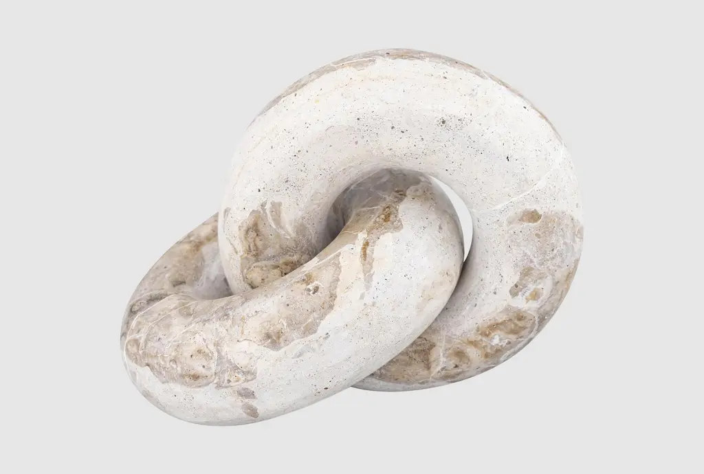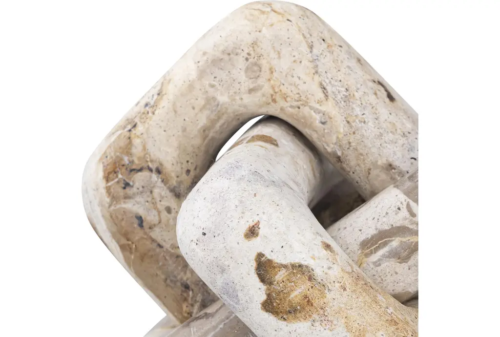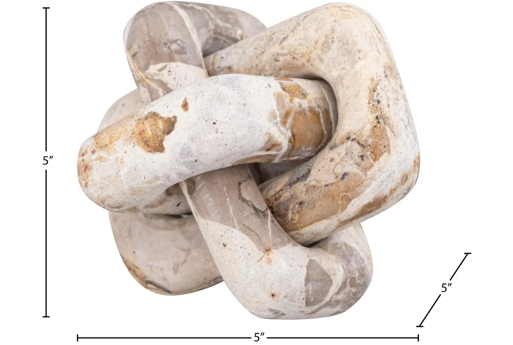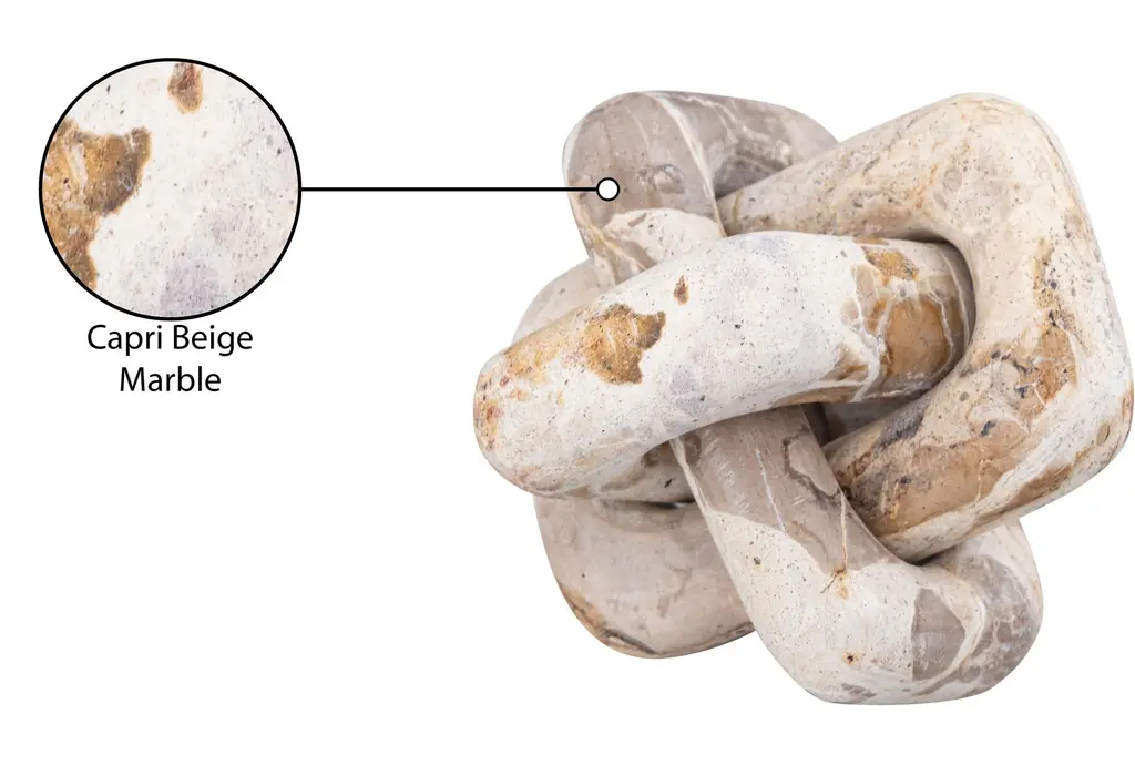 This 5" x 5" Bond Beige Marble Knot Table Decor adds a touch of modern sophistication to any room. Crafted from genuine marble, this unique geometric shape serves as a versatile accent object. Its neutral beige color blends seamlessly with various interior styles, enhancing the natural contemporary appeal of your space.