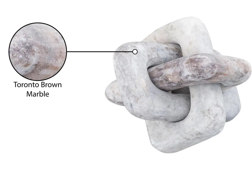 The 5" X 5" Bond Brown Marble Knot Table Decor is a stunning addition to any modern or contemporary space. Crafted from genuine Toronto Brown Marble, this decorative knot serves as a sophisticated tabletop accessory. Its unique design and high-quality material make it a standout piece in any room.