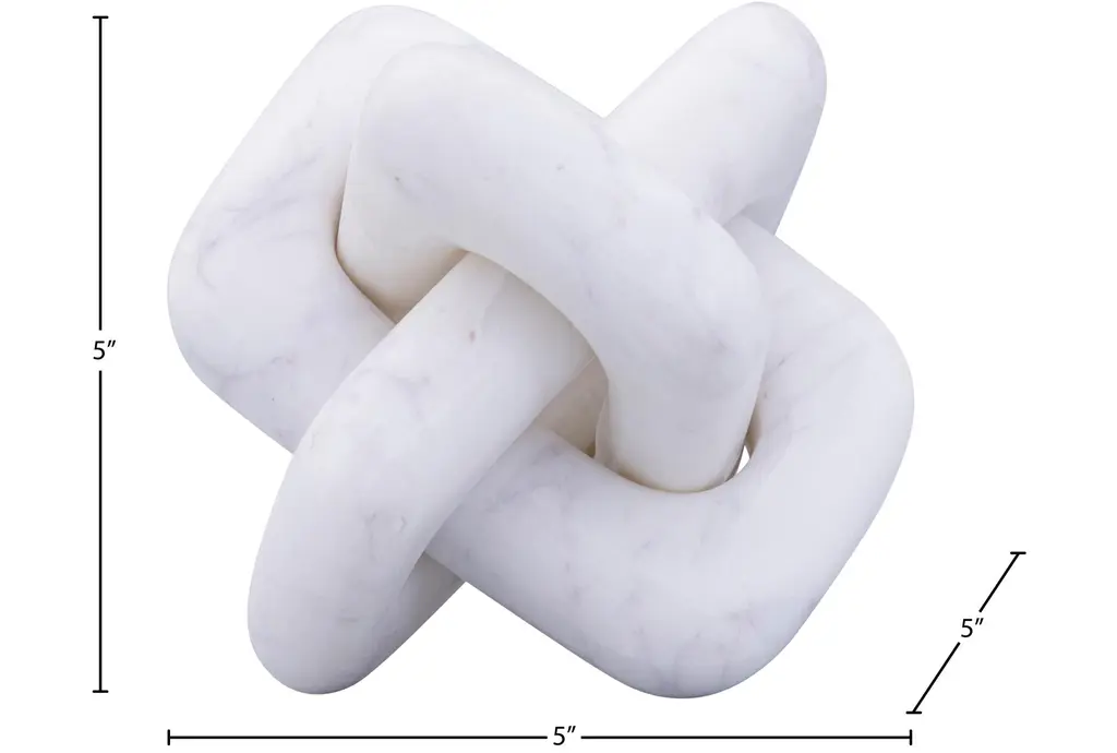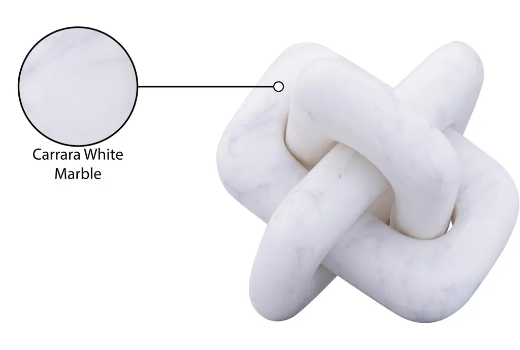 Enhance your modern decor with the 5" X 5" Bond White Marble Knot Table Decor. This elegant piece is crafted from genuine Carrara white marble, adding a touch of sophistication to any tabletop. Its unique knot design makes it a standout accessory in any contemporary setting.