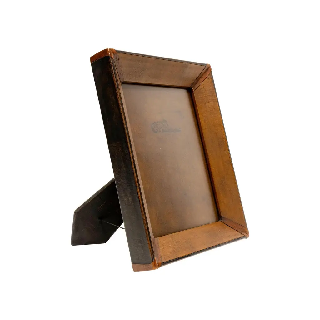 5X7 Medium Brown & Black Leather Tabletop Picture Frame- The Saddle Shop