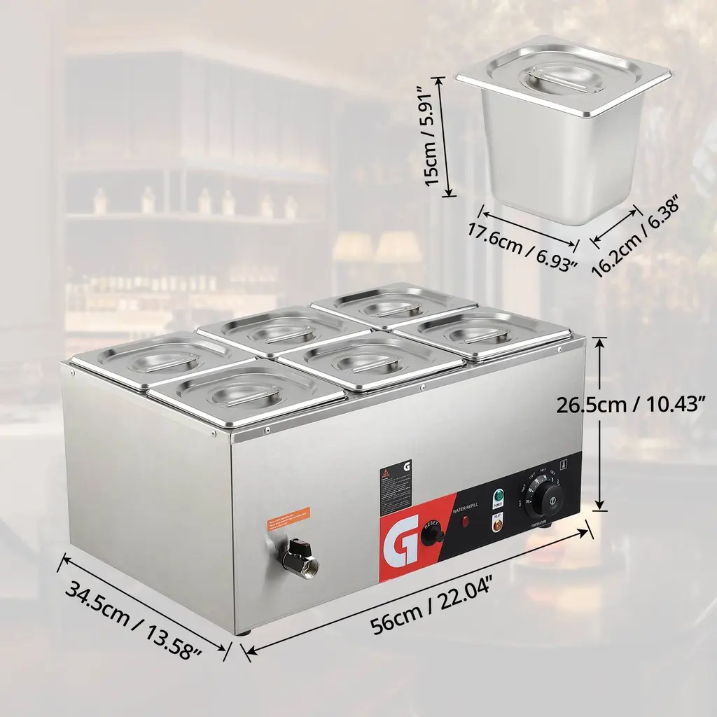 6-Pan Commercial Food Warmer Electric Steam Table - 2.6qt