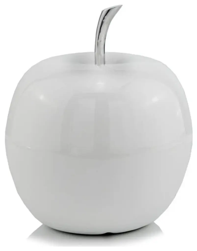 This decorative apple sculpture adds a touch of modern sophistication to any space with its sleek aluminum construction. The crisp white coloration exudes a contemporary elegance that effortlessly elevates your decor. Its unique design makes it a versatile piece that can stand alone as a statement accent or be paired with other decorations for a cohesive look. Ideal for those seeking a stylish and minimalist aesthetic, this sculpture is sure to be a conversation starter in any room. 5.5-inch H x 4-inch W x 4-inch D
