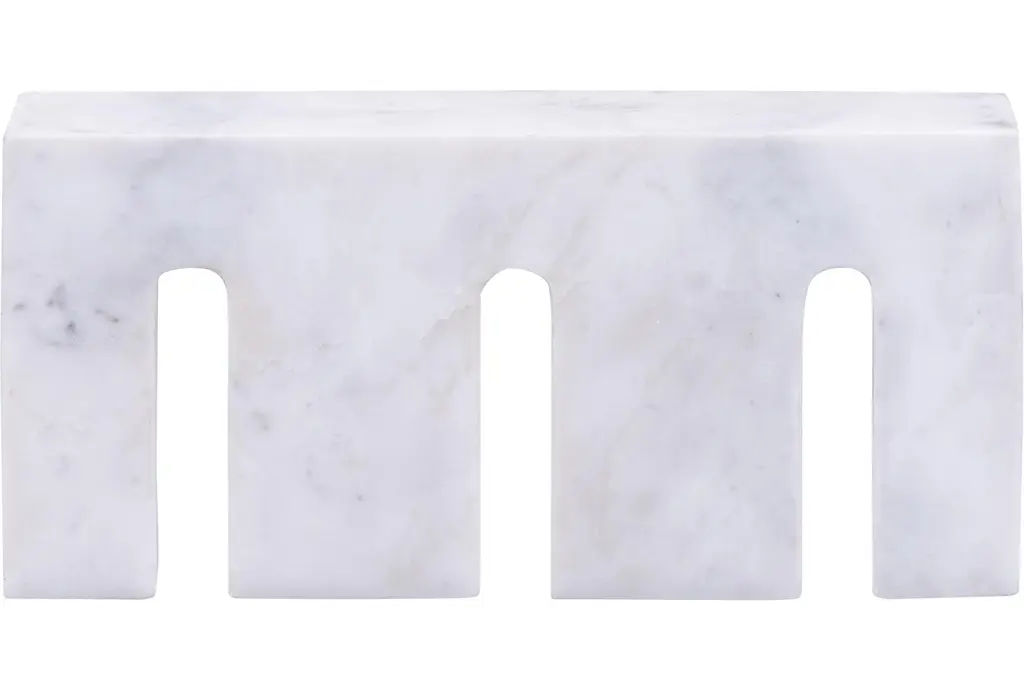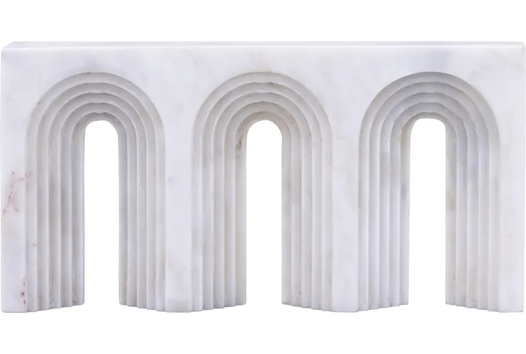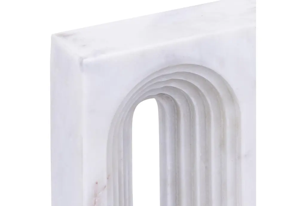 The 6" X 12" Curva White Marble Table Decor is a stunning addition to any modern space. Crafted from marble, this piece features a unique curved shape and textured detailing that adds depth to its neutral white hue. Perfect for adding a touch of contemporary style to your home.