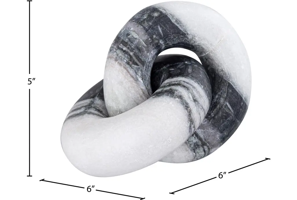 Enhance your home with the striking 6" X 5" Knot Black & White Marble Table Decor. This modern accent object features a captivating geometric shape that adds a touch of contemporary flair to any room. The marble material ensures durability and a luxurious feel.