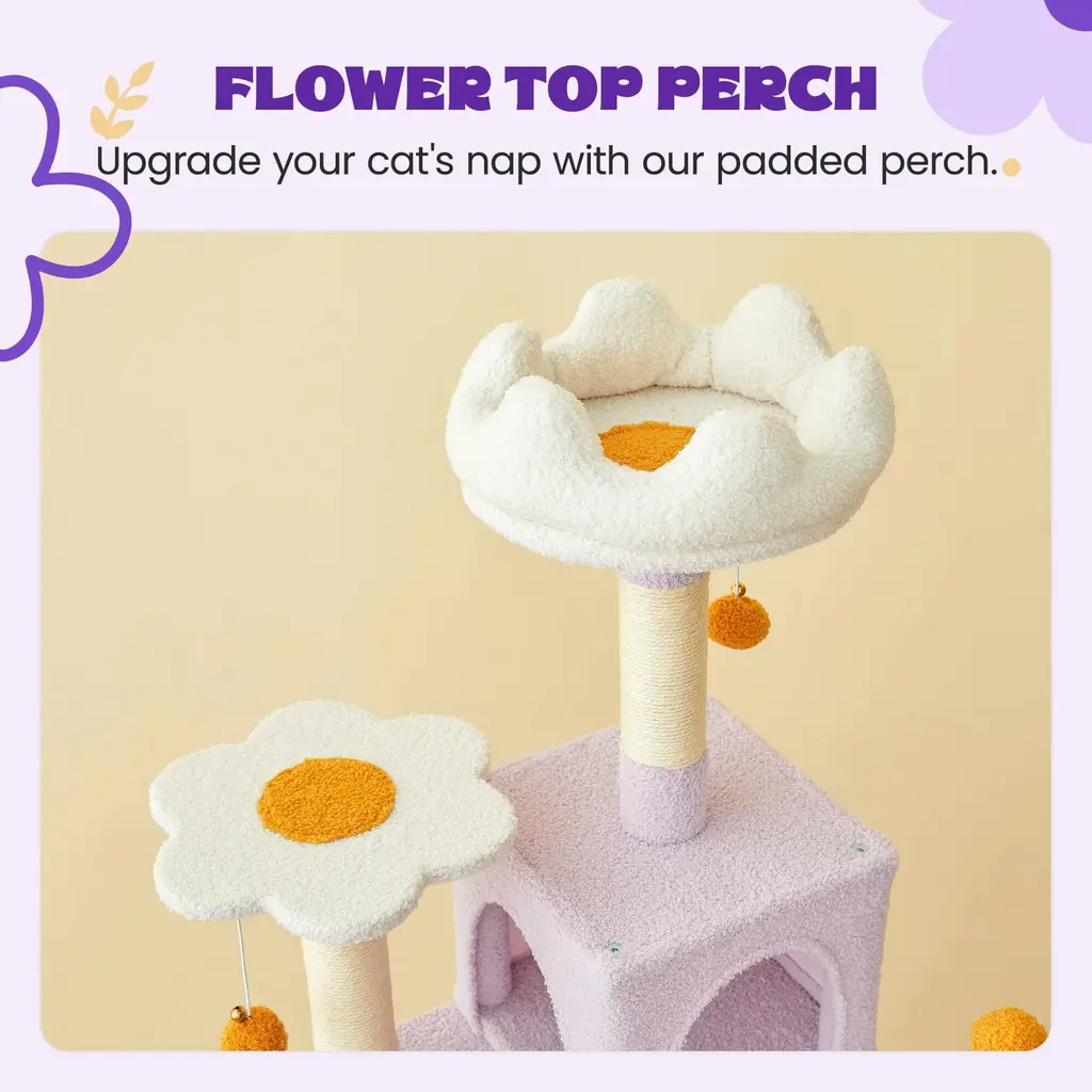 63.8" Cat Tree For Indoor, Multi-Level Cat Tower With Scratching Posts, Hammock, Dangling Toys, Stable Cat Condo Pet Play House - Purple