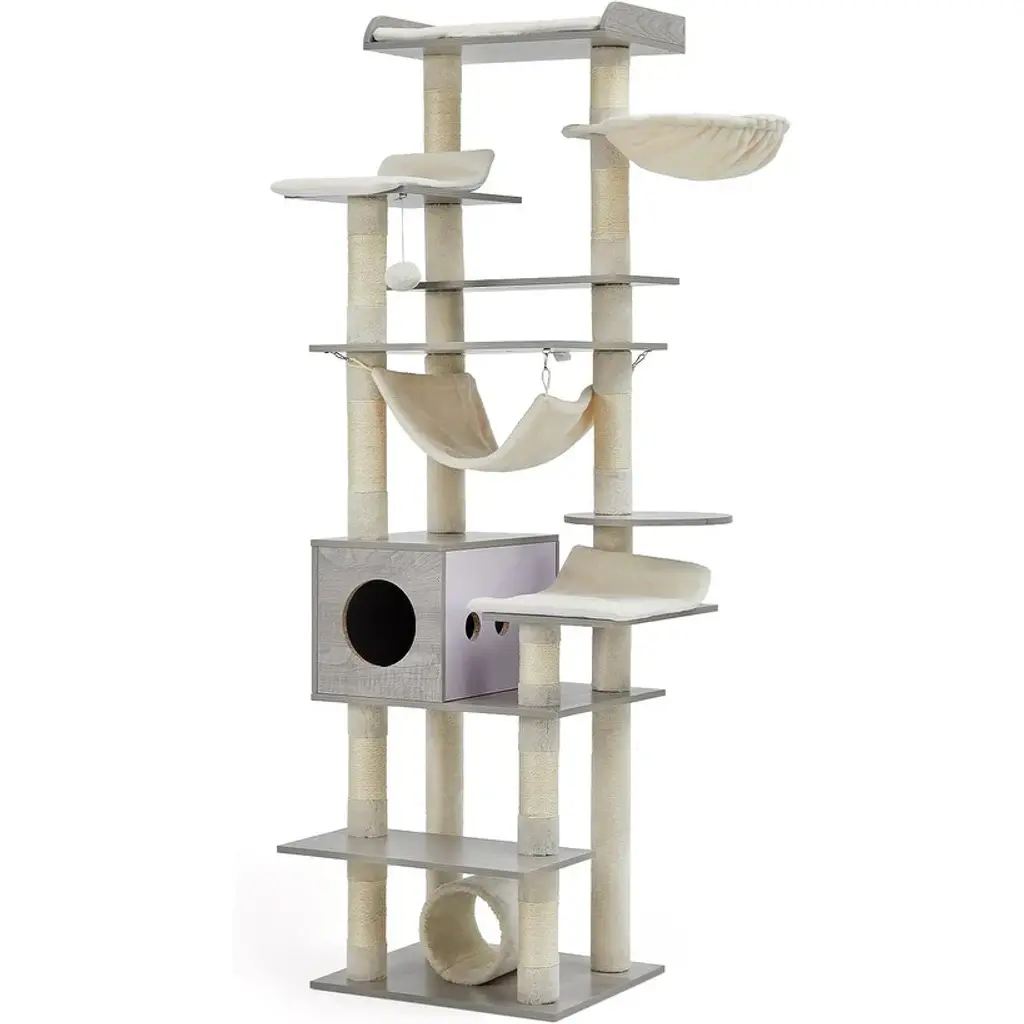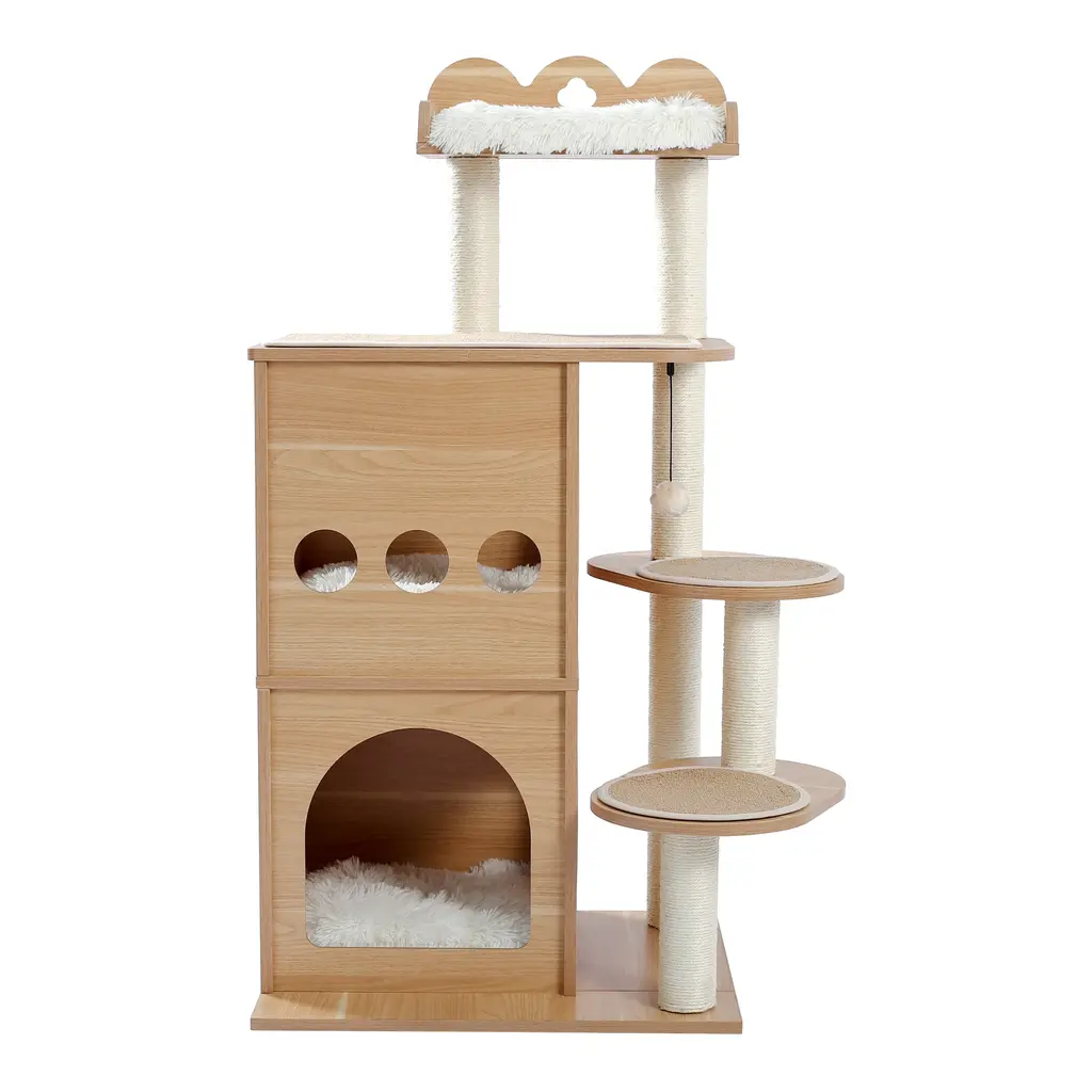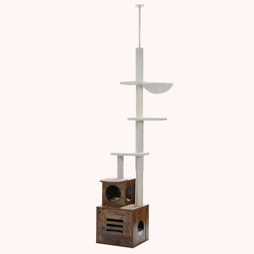 66.9-Inch Cat Tower With Litter Box Enclosure And Comfortable Removable Cushions - Rustic-Brown