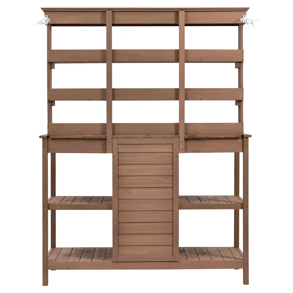66" Outdoor Wooden Potting Bench Table, Garden Workstation - Brown