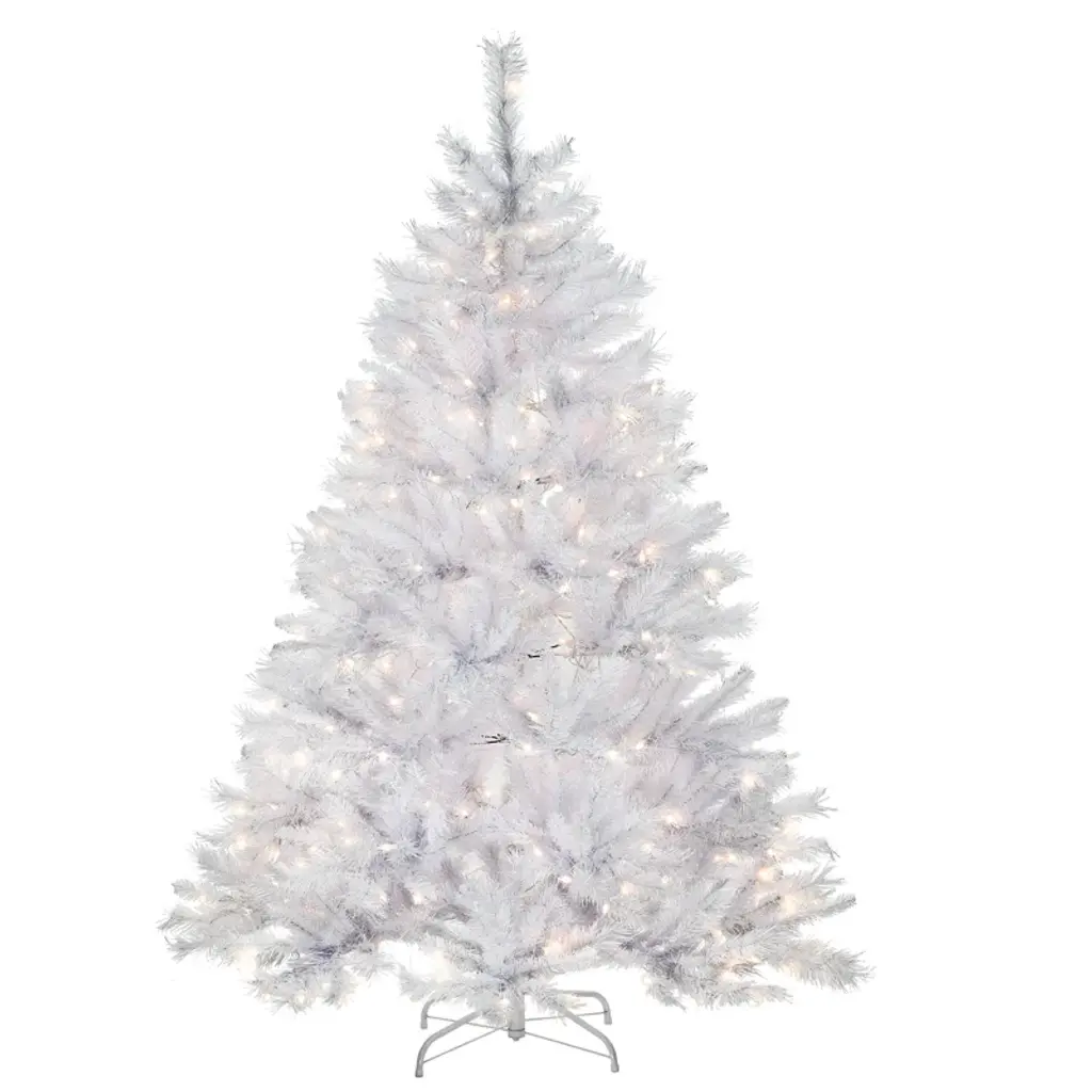 6Ft Tall Christmas Tree With 250 Pre-Lit Led Lights, Realistic Douglas Fir, And Stable Metal Base For Festive Holiday Display - 6 Foot - White