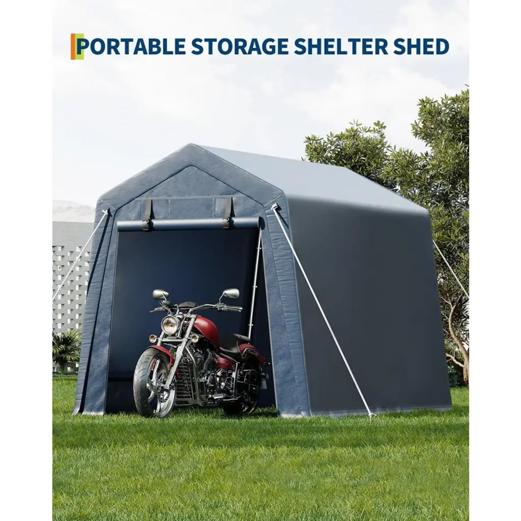6X6 Ft Outdoor Storage Shed With Roll-up Zipper Door & Mesh Window, Heavy Duty Motorcycle Shed, Portable Carport For Bike Firewood Tools, Grey