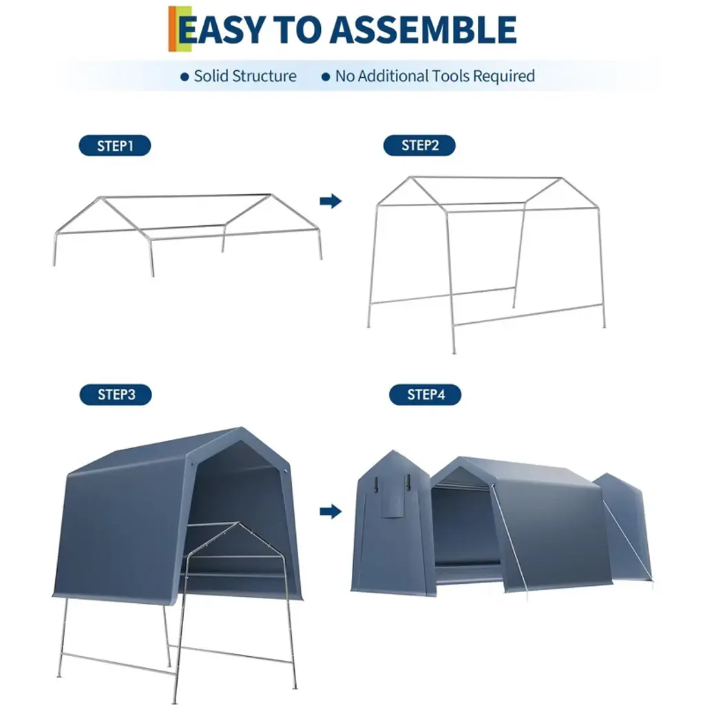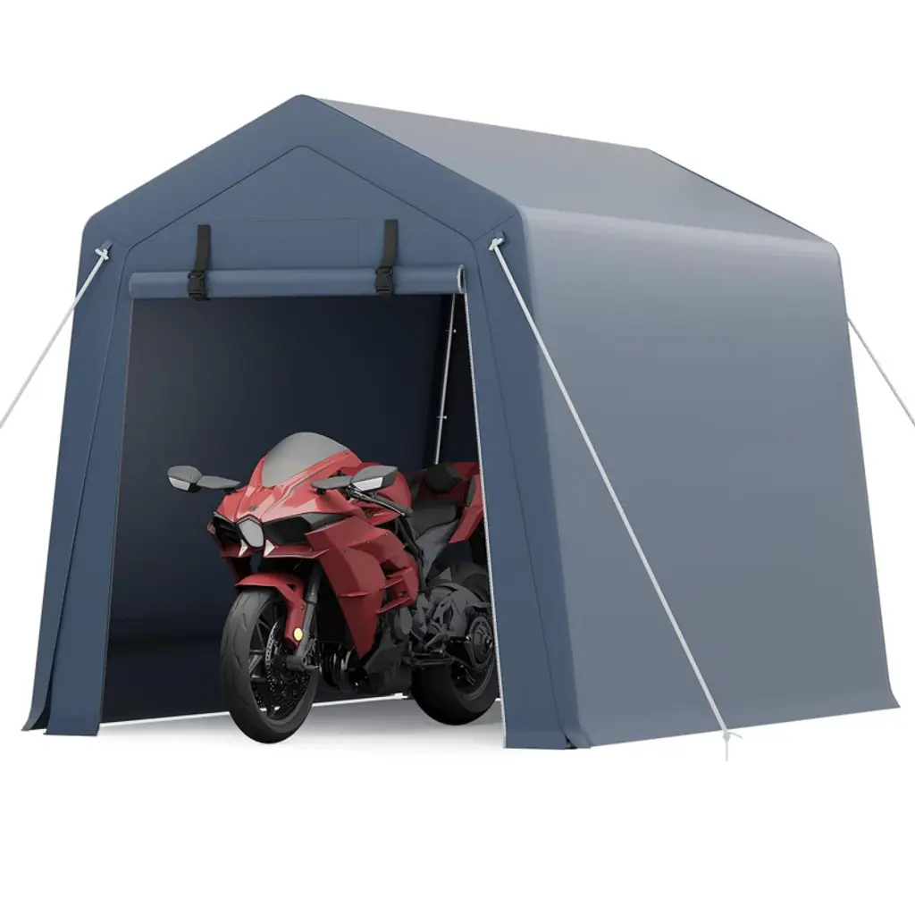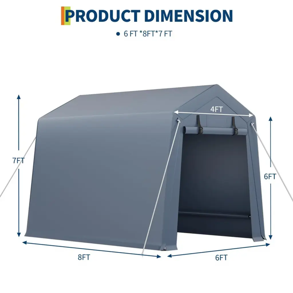 6X8 Ft Outdoor Storage Shed With Roll-up Zipper Door & Mesh Window, Heavy Duty Motorcycle Shed, Portable Carport For Bike Firewood Tools, Grey