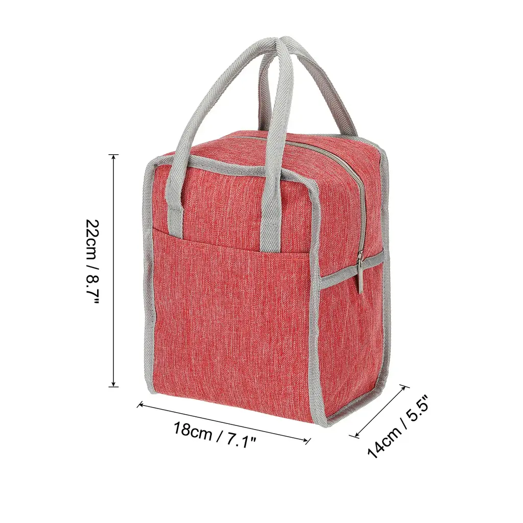 The insulated lunch bag can be used in offices, picnics, camping trips, travel, or any other outdoor activities. You can pack a variety of foods and drinks, including sandwiches, salads, fruits, and more. It is great for keeping your lunch fresh and delicious, no matter where you are.SpecificationColor: OrangeMaterial: Oxford Cloth, Cotton, Aluminum FilmSize: 18 x 14 x 22 cm / 7.1 x 5.5 x 8.7 inch(L*W*H)Packing List: 1Pcs x Portable Lunch BagAdvantageThe lunch box bag is made of waterproof Oxford cloth, which is durable and tear-resistant. The interior is equipped with thermal insulation cotton and aluminum film to avoid heat and effectively keep warm and cold, easy to clean.Zipper on the side, easy to open and close. The handle design is convenient for carrying.There are pockets for easy storage of items such as your phone, keys and other personal belongings.InstructionPack your favorite foods and drinks into the lunch tote and close it securely. Make sure all closures are properly fastened to prevent spills and leaks. When you are ready to eat, simply open the bag and enjoy your fresh and delicious meal.NOTE:1. After use, wipe down the tote bag with a damp cloth or sponge to clean off any spills or dirt. Let it air dry before storing it away.2. This item is not intended for use by 12 and under.