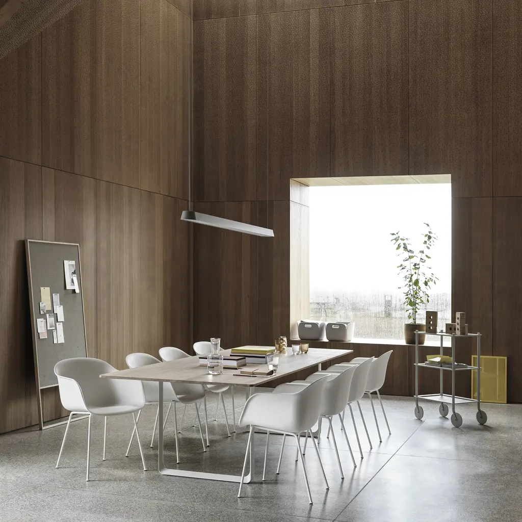 There’s big and then there’s Muuto’s expansive 70/70 Table supersized to the limit in its 3 largest iterations. TAF Studio designers juxtapose an angular base in light but robust cast aluminum with the strikingly ultra-thin tabletop. Equally suited for dinner for a crowd, coworking at home or office or for gathering in hospitality spaces, it’s available surfaced in oak veneer, matte linoleum or hard-wearing laminate.