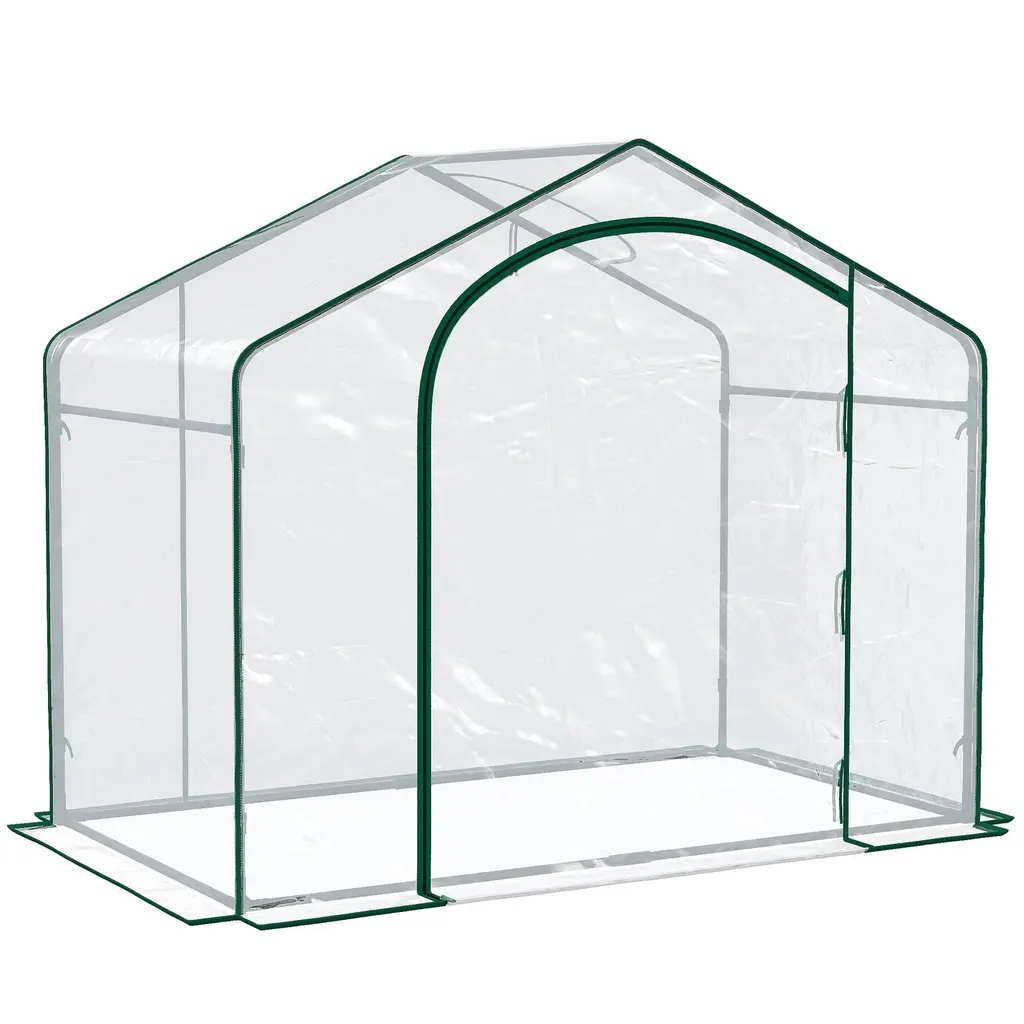 The Outsunny 6' x 3' x 5' Portable Walk-in Greenhouse is a versatile and durable gardening solution designed for both novice and experienced gardeners. This greenhouse features a sturdy PVC cover and a robust steel frame, ensuring long-lasting performance and stability. Its dimensions of 6 feet in length, 3 feet in width, and 5 feet in height make it a spacious yet manageable size for a variety of gardening activities.The greenhouse includes a convenient zipper door, allowing for easy access and a secure closure to protect your plants from pests and harsh weather conditions. Additionally, it has a top vent that can be opened to regulate temperature and humidity, creating an optimal environment for the growth of flowers, vegetables, and saplings.This portable design makes it easy to set up and move, enabling gardeners to adjust their greenhouse location based on sunlight and other environmental factors. The clear PVC cover allows for maximum sunlight penetration, promoting healthy plant growth. Whether you're looking to extend your growing season, protect delicate plants, or simply enjoy the benefits of a controlled gardening environment, the Outsunny Portable Greenhouse is an excellent choice for any garden enthusiast.
