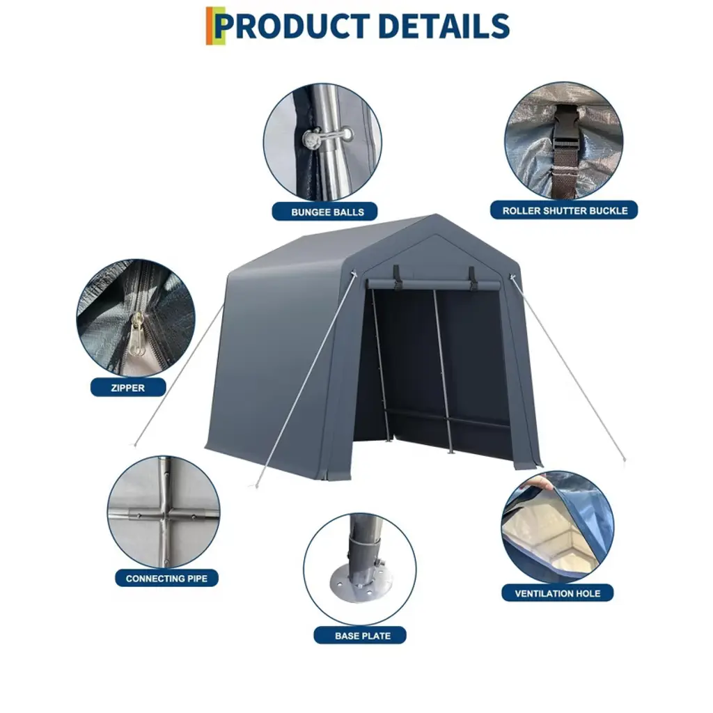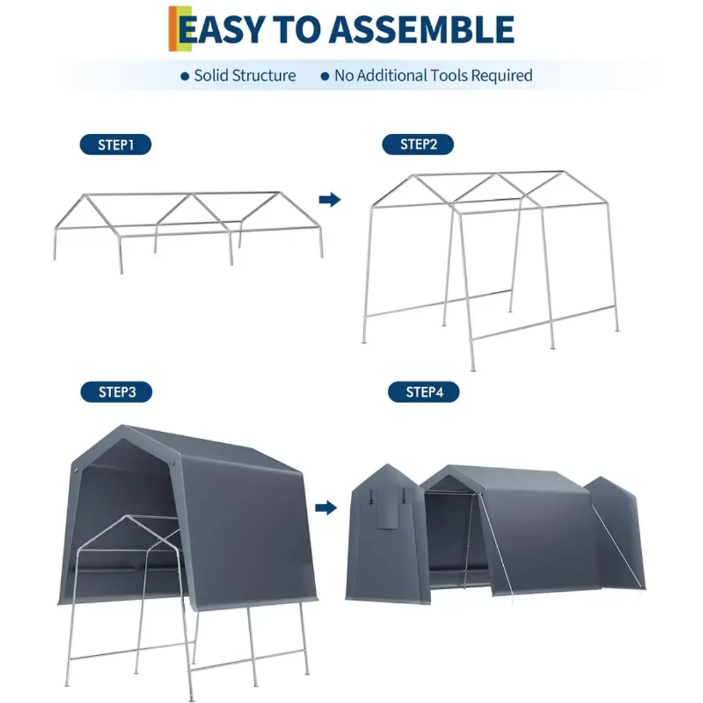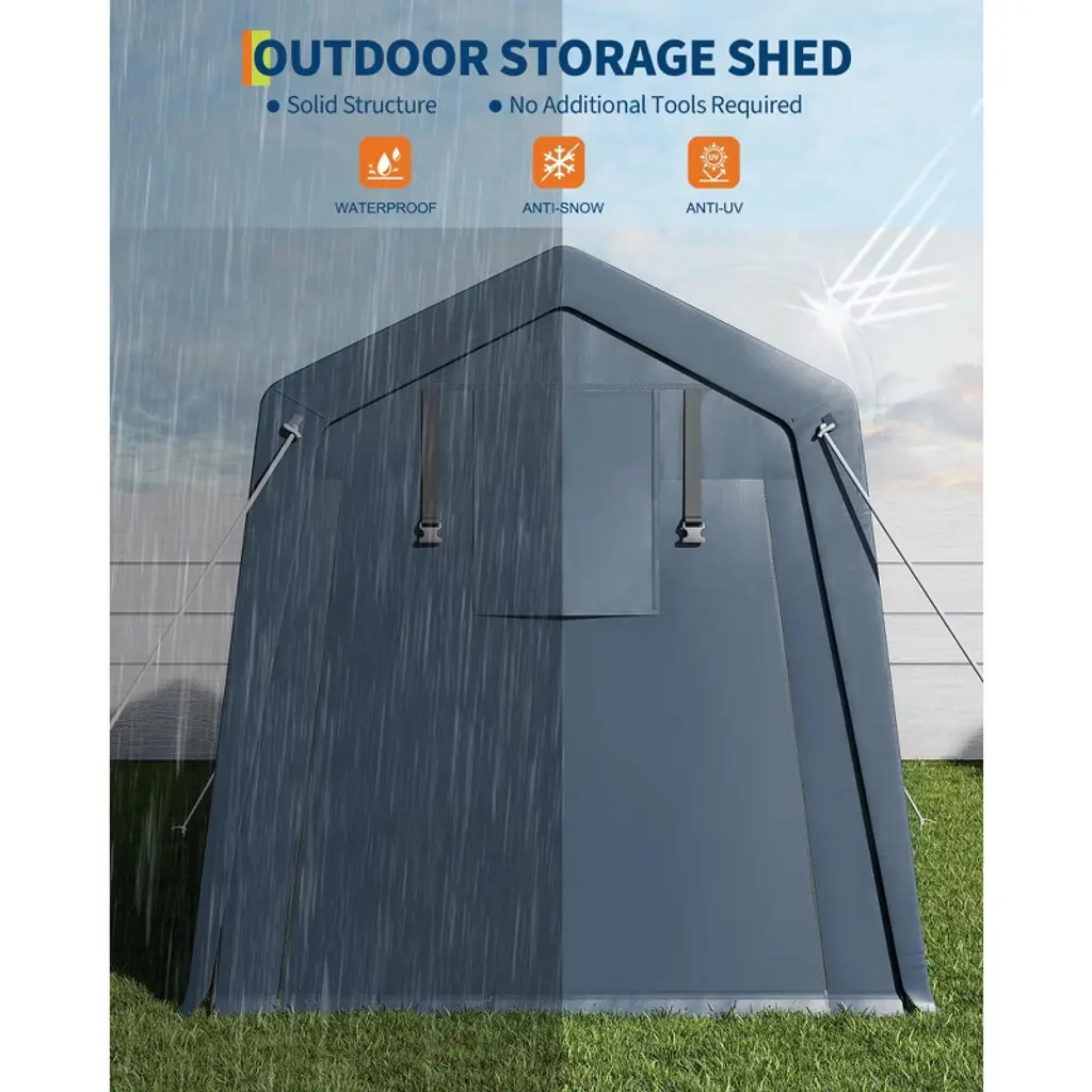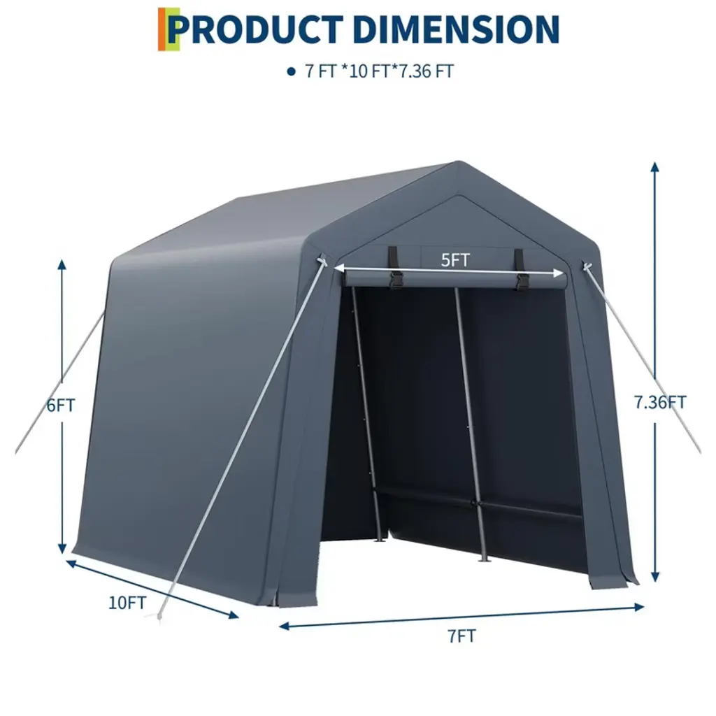 7X10 Ft Outdoor Storage Shed, Motorcycle Shed With 2 Roll-up Zipper Doors & Vents, Heavy-duty Carport Portable Garage For Bike Firewood Tools, Grey