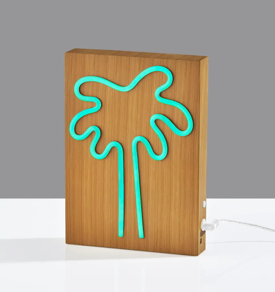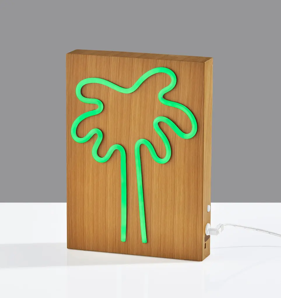 7X9 Wood + Color Change Neon Palm Tree Table Or Wall Light Décor