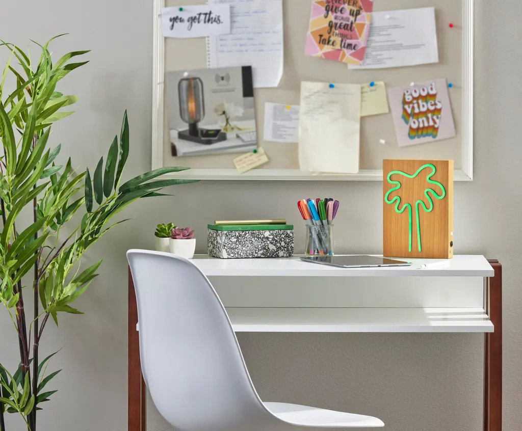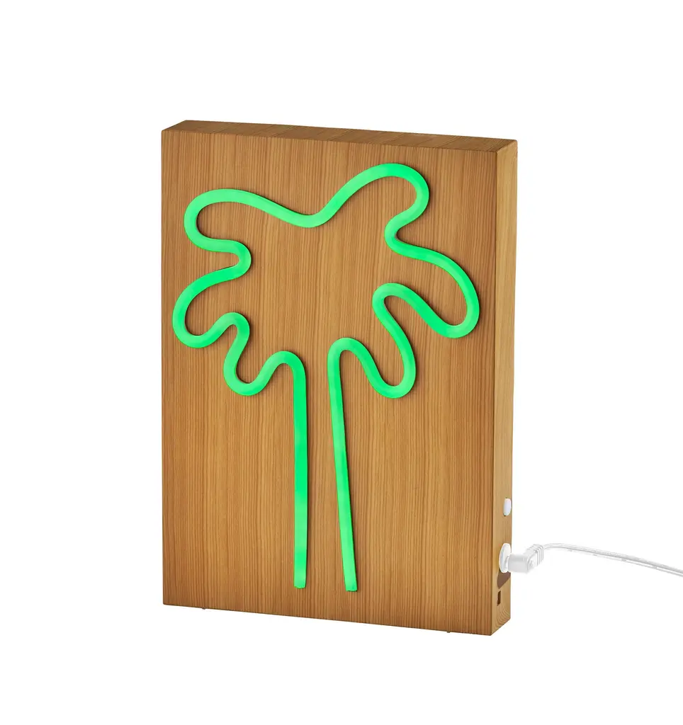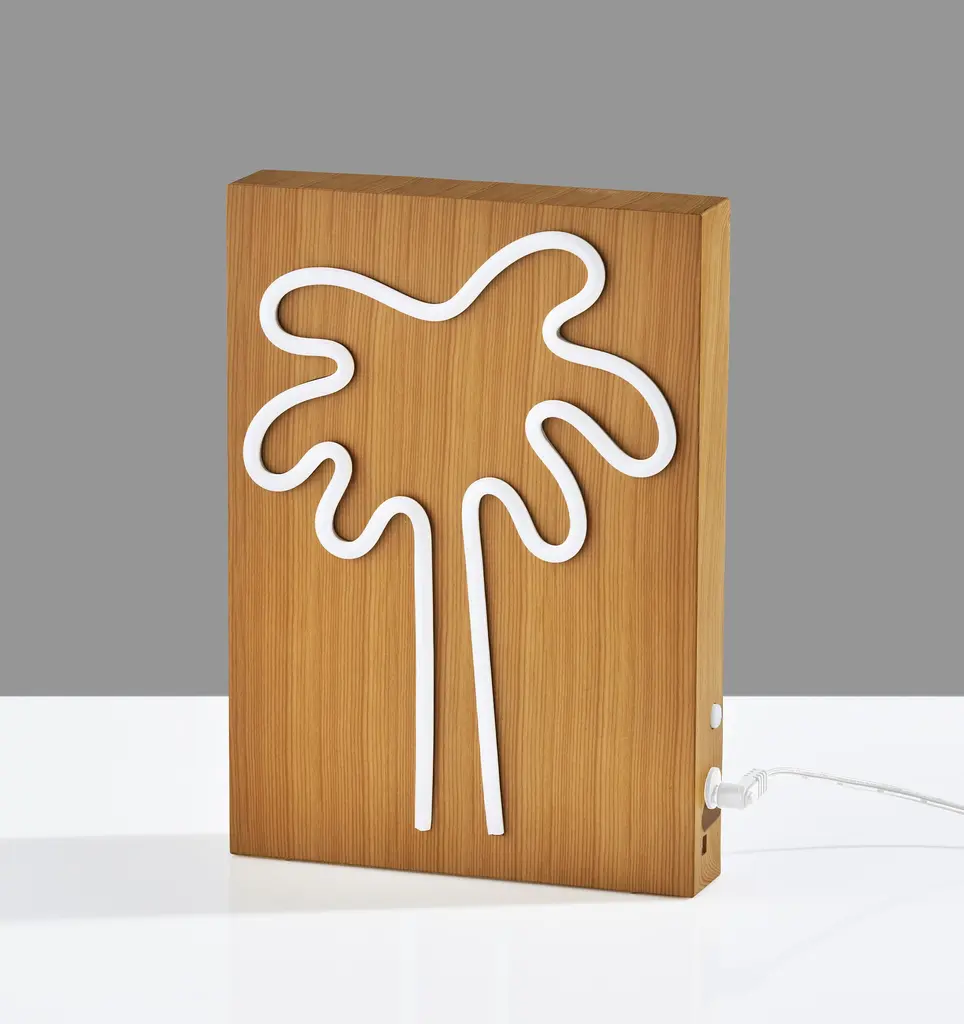 Add a touch of modern flair to your space with the 7X9 Wood + Color Change Neon Palm Tree Table or Wall Light Décor. This versatile piece features a natural wood grain finish on plastic, making it a stylish addition to any room. Perfect for kids' bedrooms or small spaces, this light offers vibrant color-changing capabilities to suit your mood.