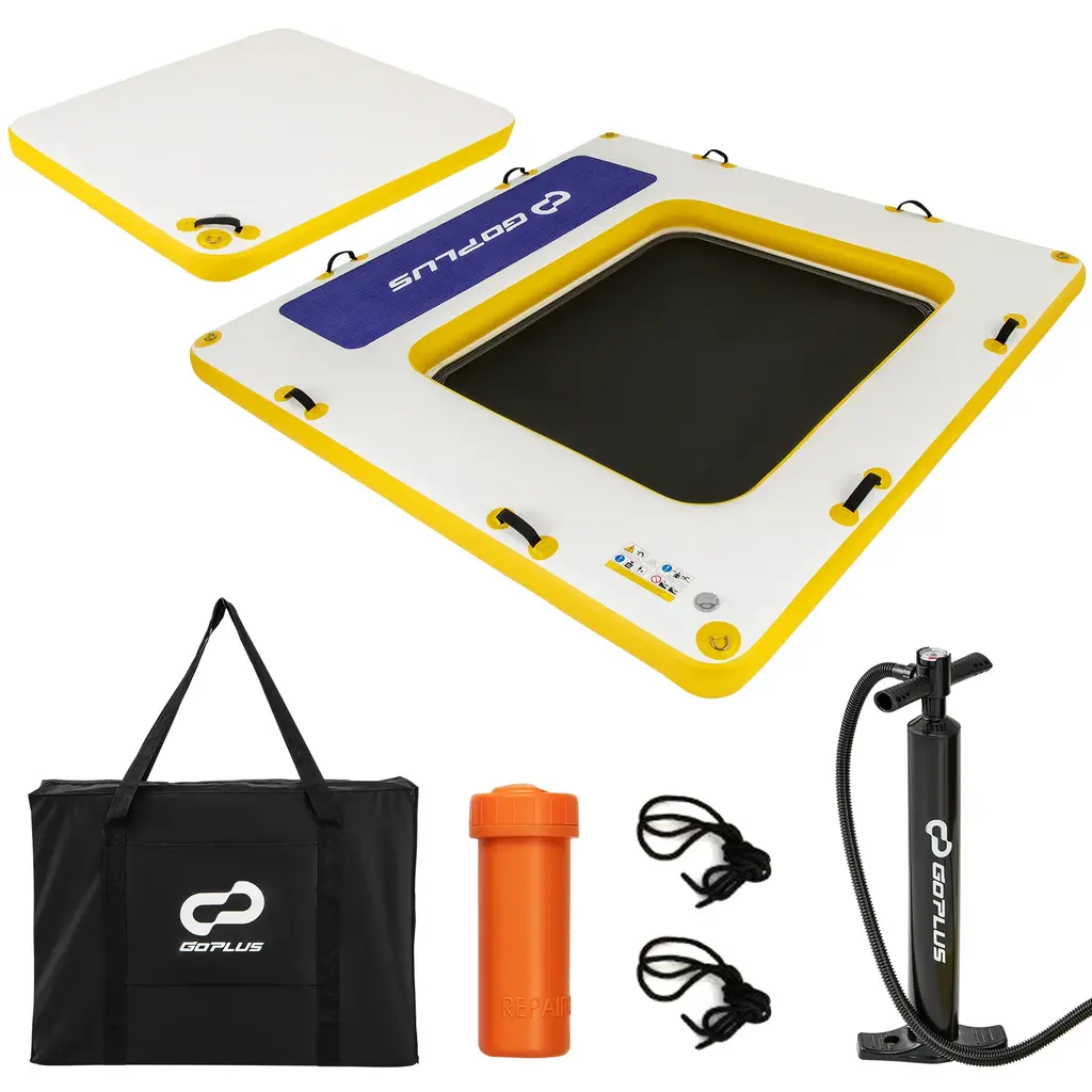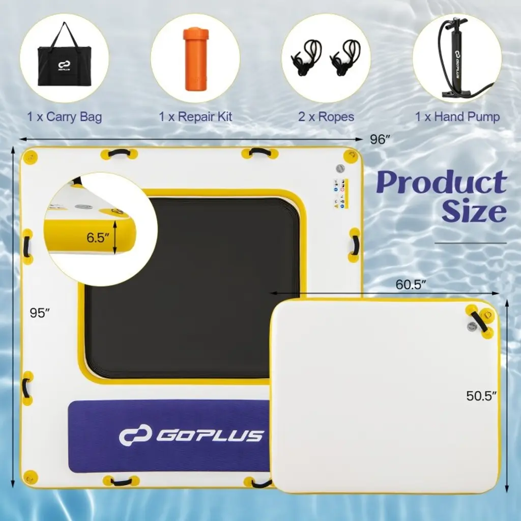 8 Ft X 8 Ft Inflatable Dock Platform With Mesh Swim Lounge - 96" X 95" X 6.5" (L X W X H) - White-Yellow