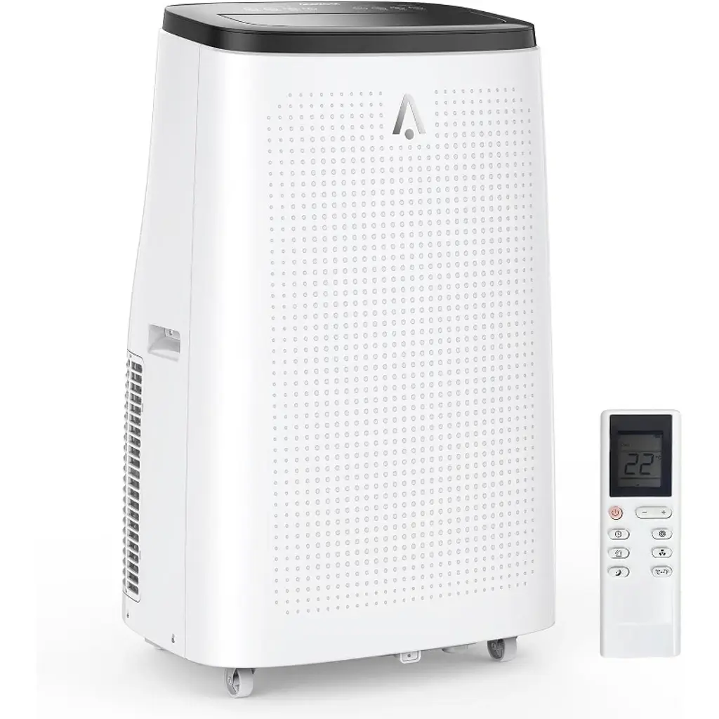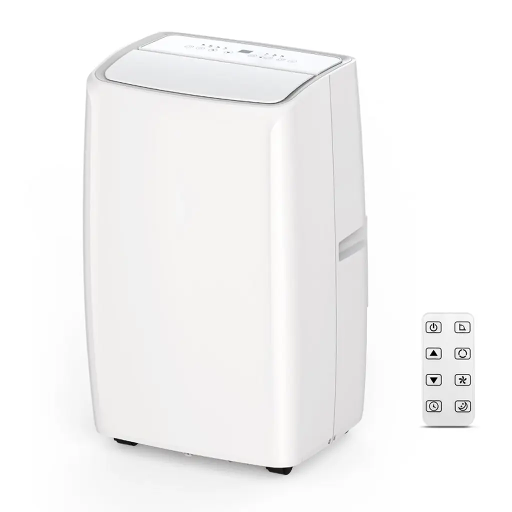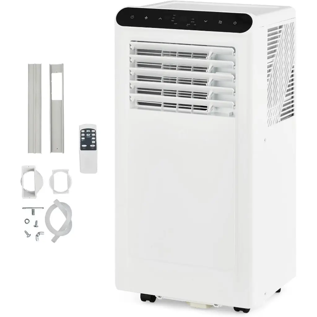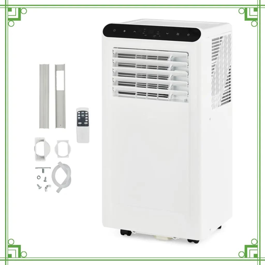 Keep your home cool and dry with this 3-in-1 portable air conditioner. Featuring 8000 BTUs of power, this unit cools spaces up to 250 sq. ft. with ease. Switch between cooling, fan, and dehumidifier modes to suit your comfort needs. The LED display and included remote make it easy to control temperature and timer settings from across the room. Designed with a quiet motor, sleep mode, and a 24-hour programmable timer, it's ideal for bedrooms, offices, or small living spaces. Setup is simple with the included window installation kit. Compact, lightweight, and easy to move with wheels and side handles.