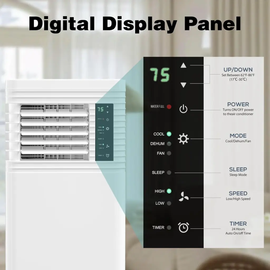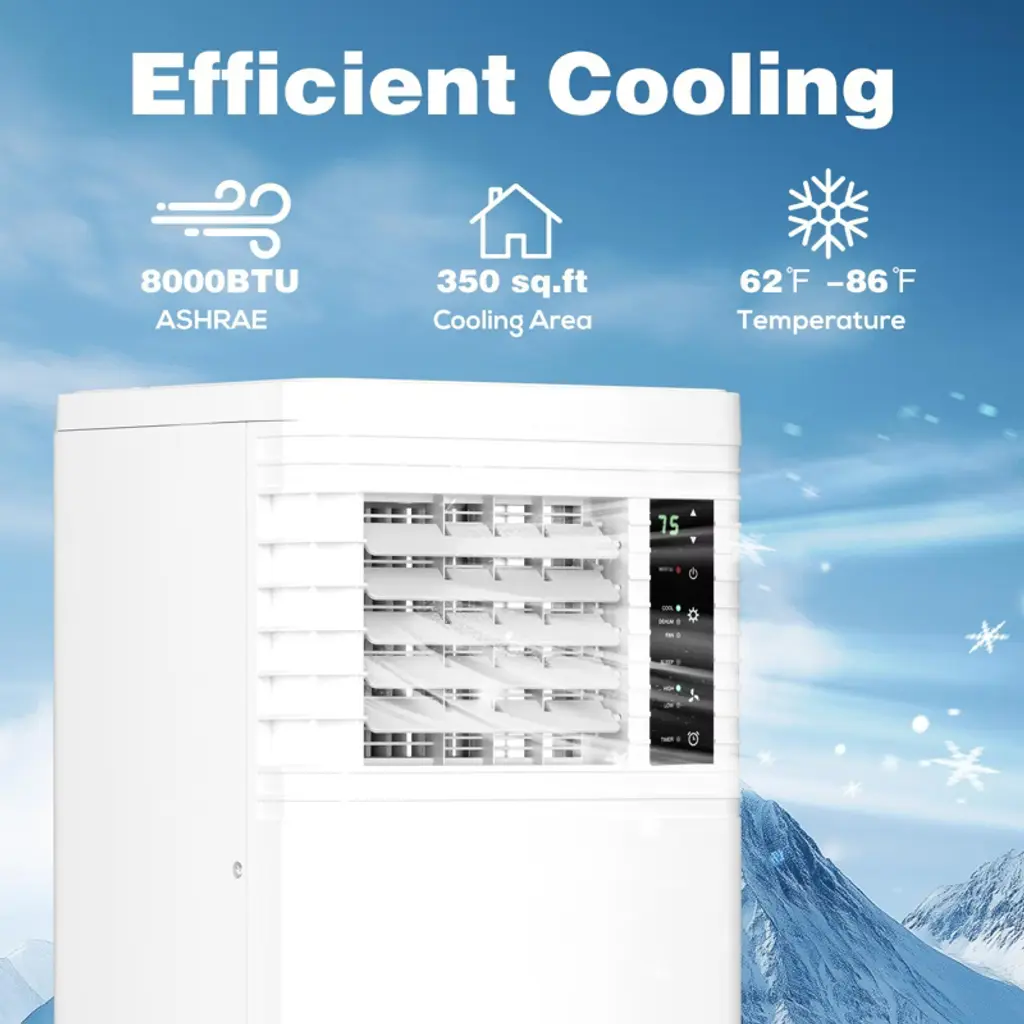 8000 Btu Portable Ac With Remote – 3-in-1 Unit For Room, Bedroom, Garage, Rv – Includes Timer, Display & Window Kit – White