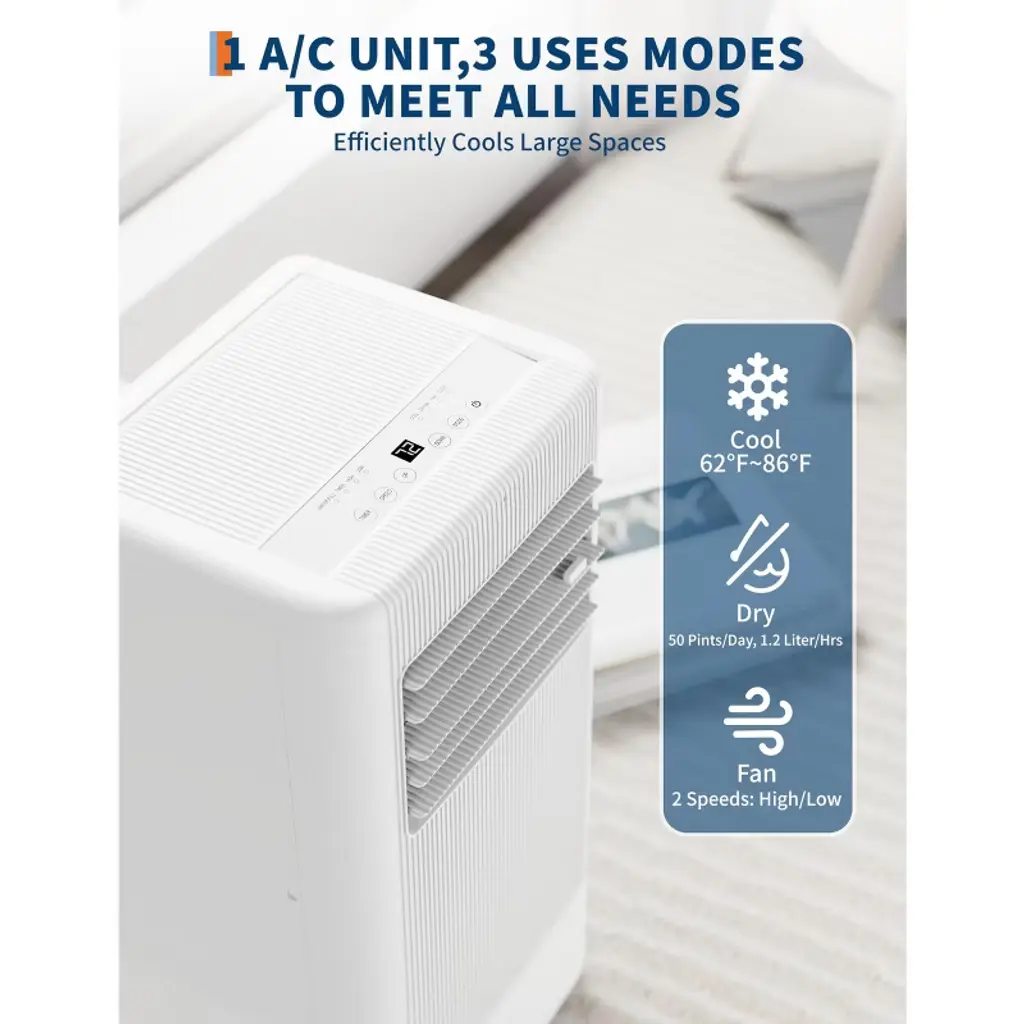 8000 BTU Portable Air Conditioner With Remote Control, 3-In-1 Quiet AC Unit, Dehumidifier & Fan for 350 Sq.Ft
