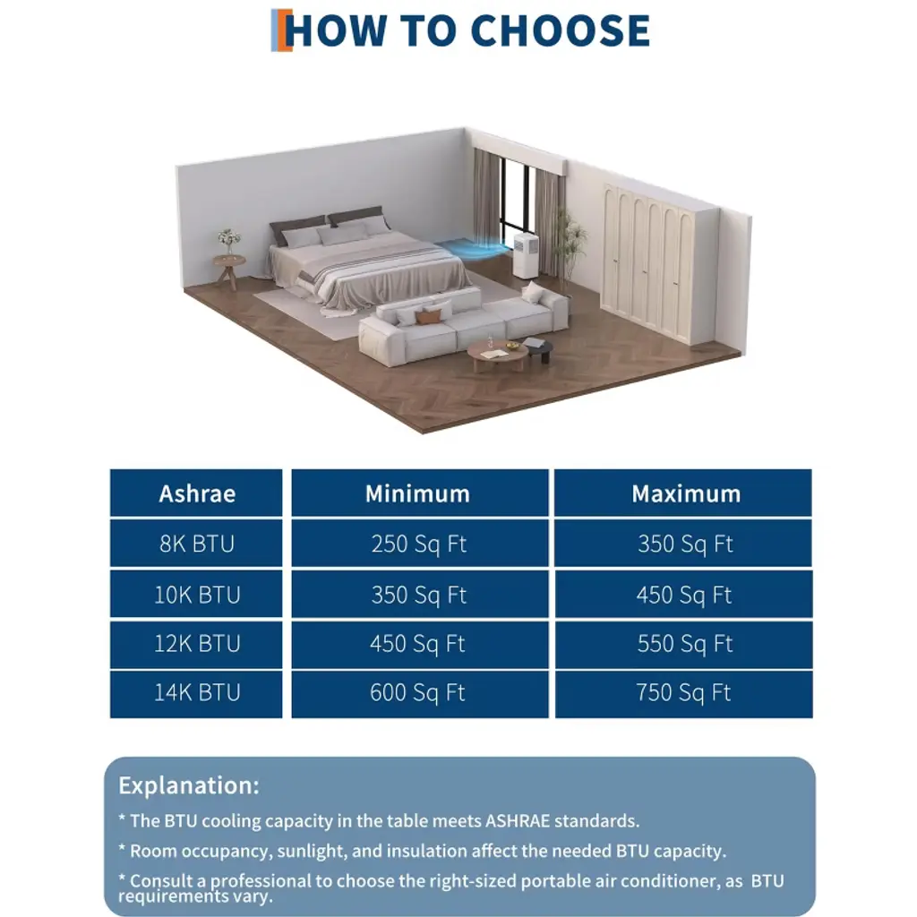 8000 Btu Portable Air Conditioner With Remote Control, 3-in-1 Quiet Ac Unit