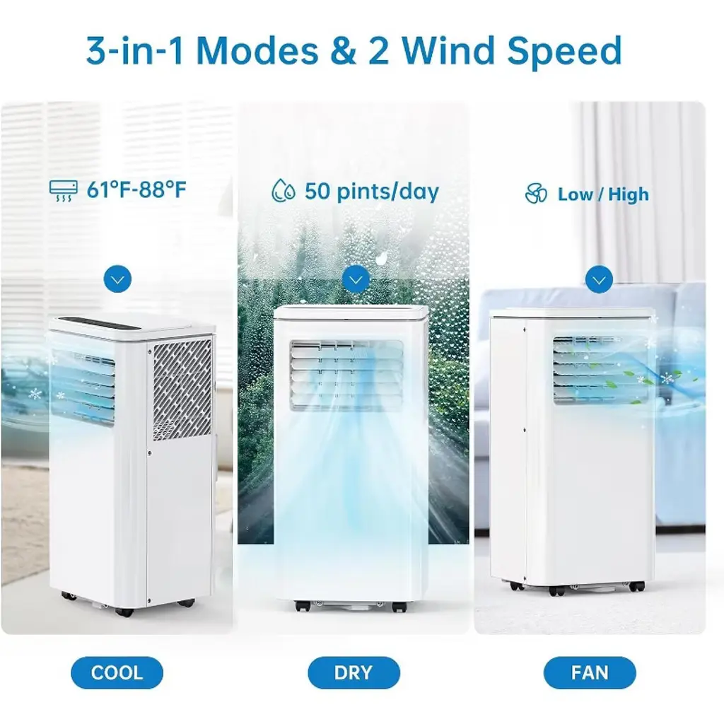 8,000 Btus Portable Air Conditioner With Cooling, Dehumidifier, Fan 3-in-1, Led Display, 24-htimer, Doe Sacc 5000btu High Efficiency Cooling