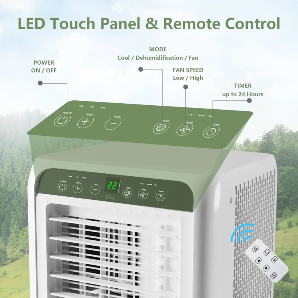 8000BTU Portable Air Conditioner, 3-In-1 Air Conditioner with Cooling, Dehumidifier and Fan, Cools Up to 350 Sq. Ft., 24-Hour Timer/Sleep Mode, Remote Control, Bedroom/Office