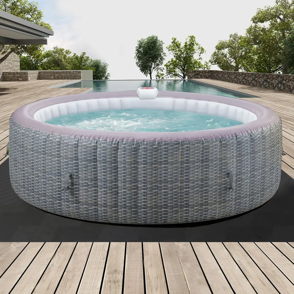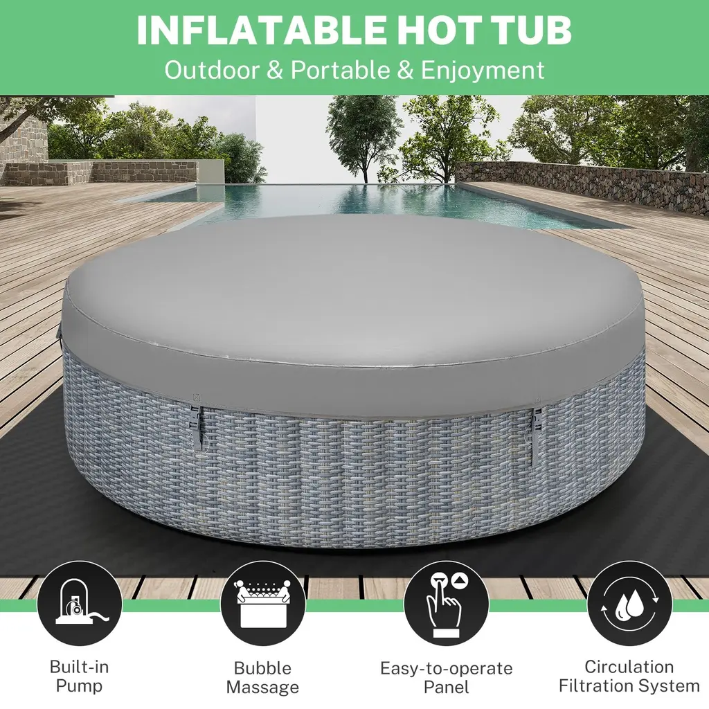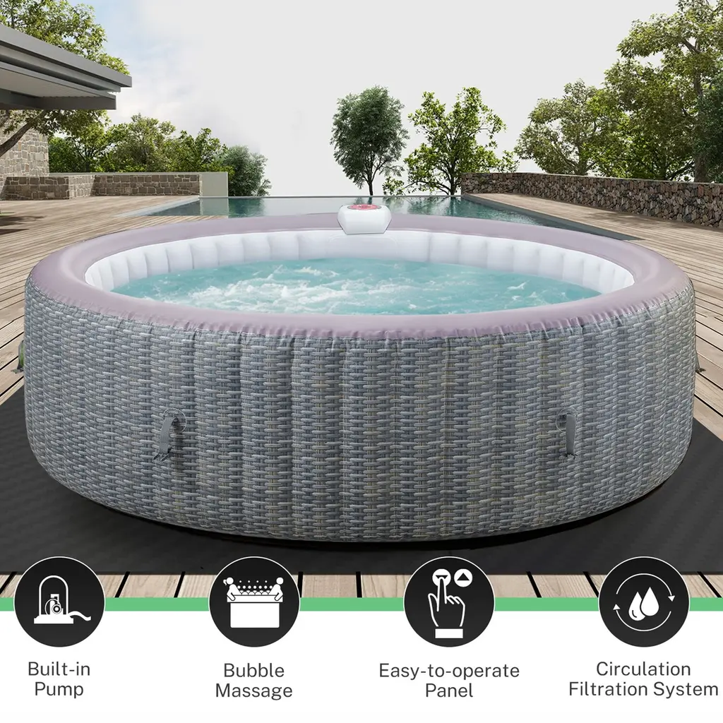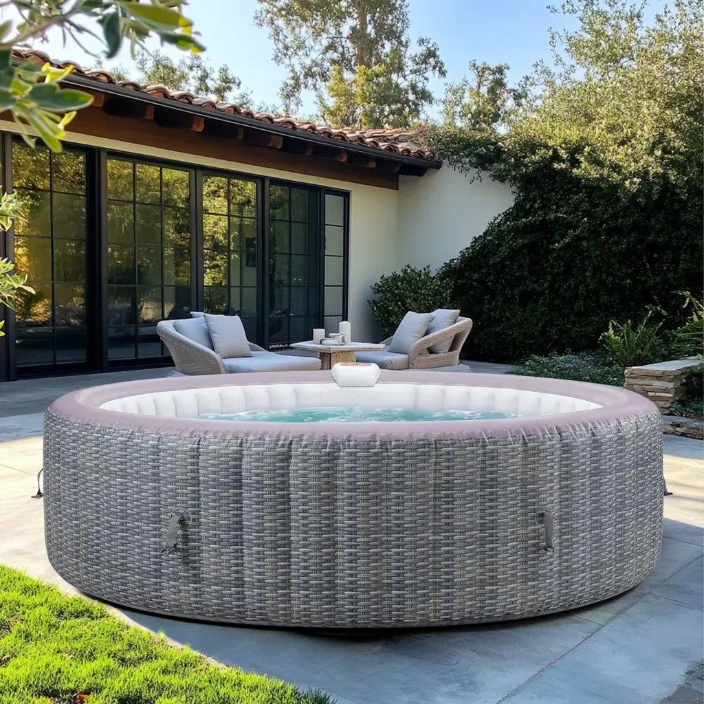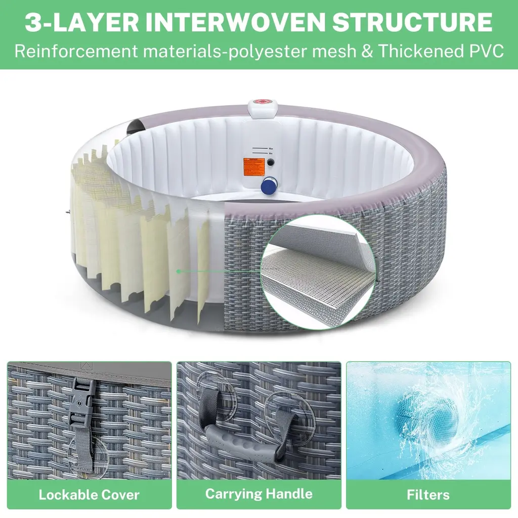 82''inflatable Hot Tub W/heating & Filters,portable Hot Tub For Home Spa,6 Person Round Pool - N/a - Woven Rattan
