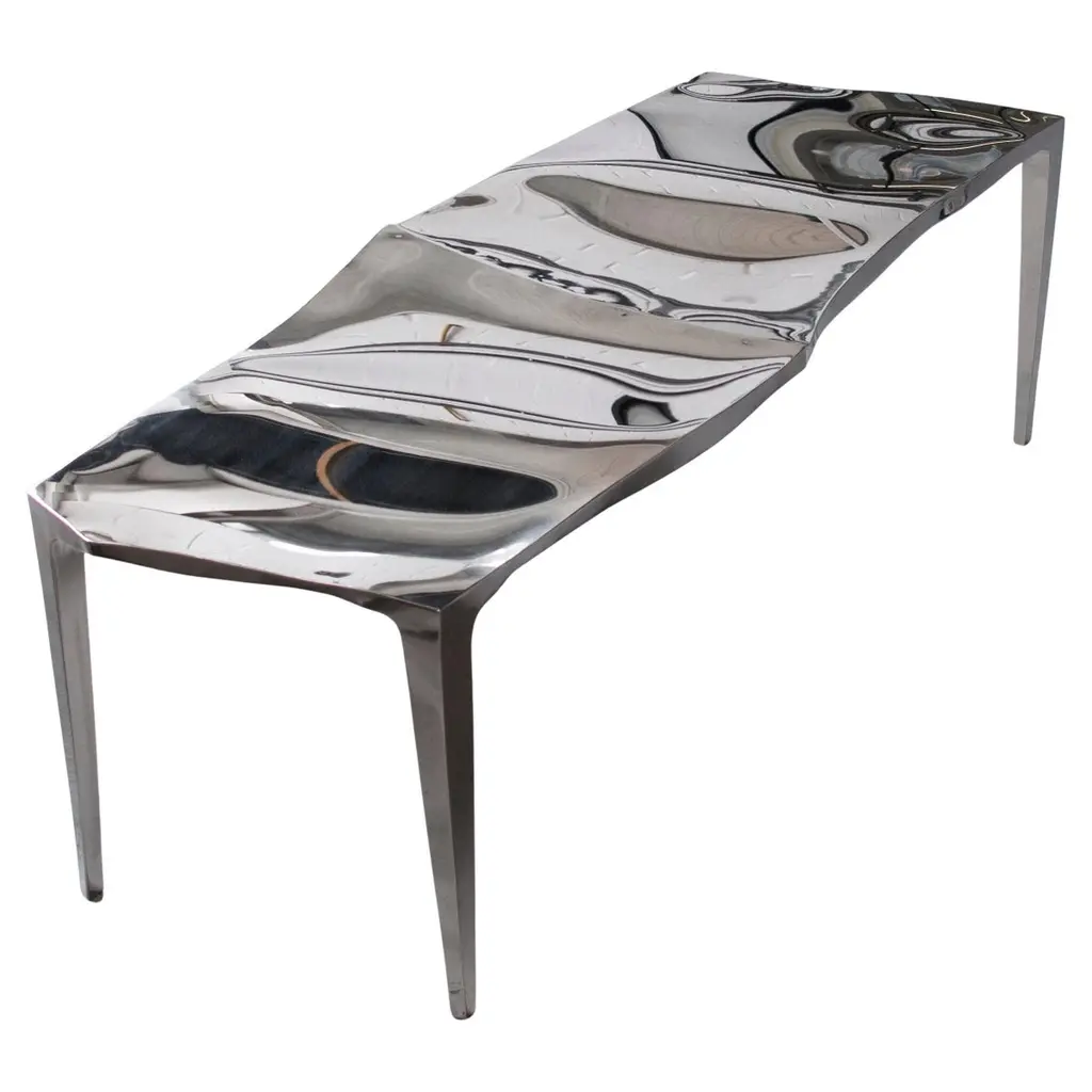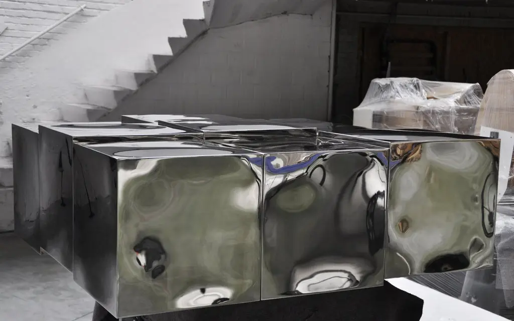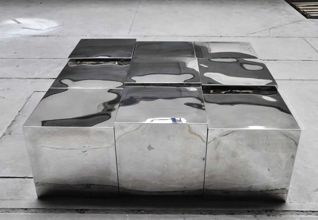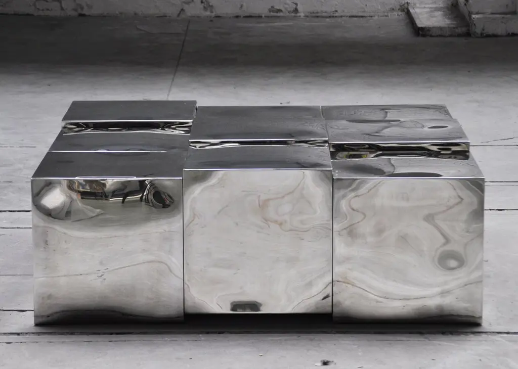 9 Cubes Table by Pol Quadens Limited Edition Of 8+4 Pieces.Dimensions: D 150 x W 150 x H 40 cm.Materials: Polished stainless steel.Pol Quadens was born in Brussels. His father was active in the fields of composites the metal industry, and the world of materials, therefore, surrounded Pol since his early childhood. After his artistic studies, he starts restoring vintage cars. This experience has allowed him to gain strong practical skills and a deep knowledge of all materials.In 1987, he made his first creations and production of objects. His sensitivity and passion for the arts led him to create functional artworks. His CD shelf has sold more than 100,000 pieces and has become iconic in its category.