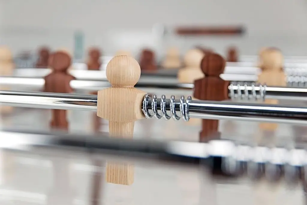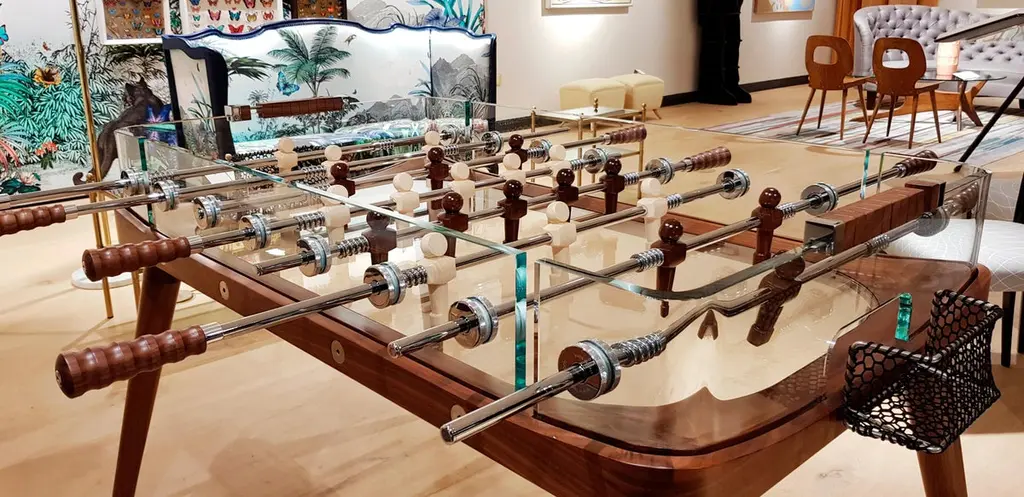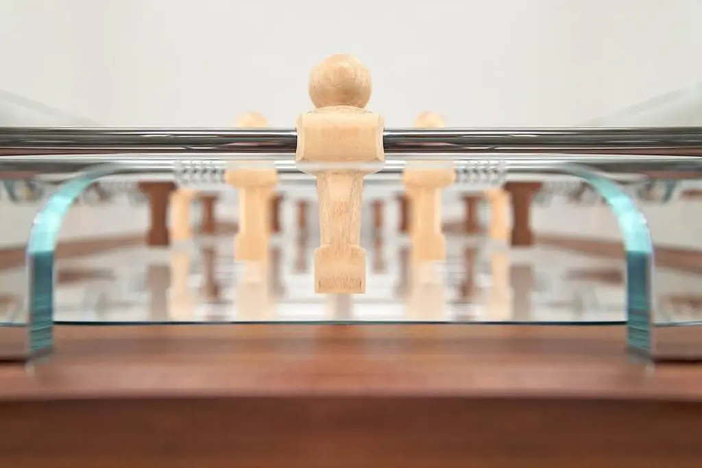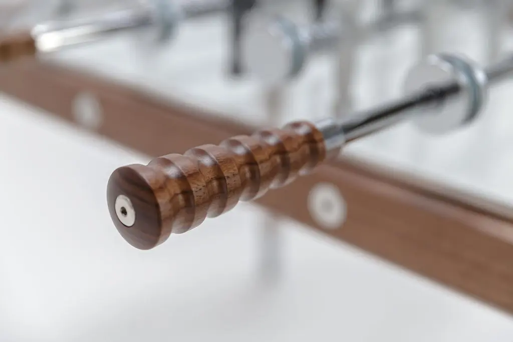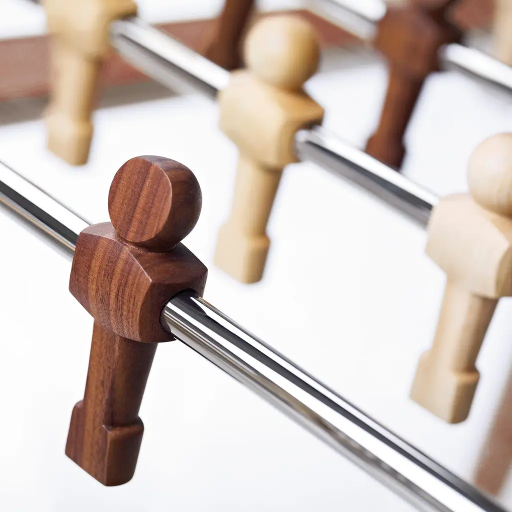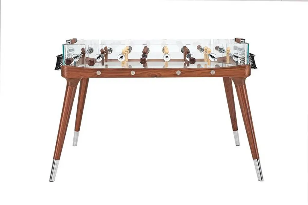 A subtle and elegant walnut structure highlights and supports this modern andessential foosball table, inviting the challenge of enjoying the game until its very last minute (90° Minuto). Engineering and technology is cleverly concealed beneath the elegant lines of this enchanting piece of Teckell® Collection.DIMENSIONS:140 x 90 x H 92 cm 55.12 x 35.43 x H 36.22 inches.Teckell® is born from the exploration of unpredictable emotions.Thanks to the masterful research of its designers, the innovation of its shapes becomes simple, living material, capable of livening up the entire room in which it is located. The purity of its lines, coupled with the luxurious elegance and grace of Teckell® make this a highly coveted possession. Its style, harmonious and refined, achieves a perfect balance making Teckell® a revolutionary adaptation of the traditional foosball table.