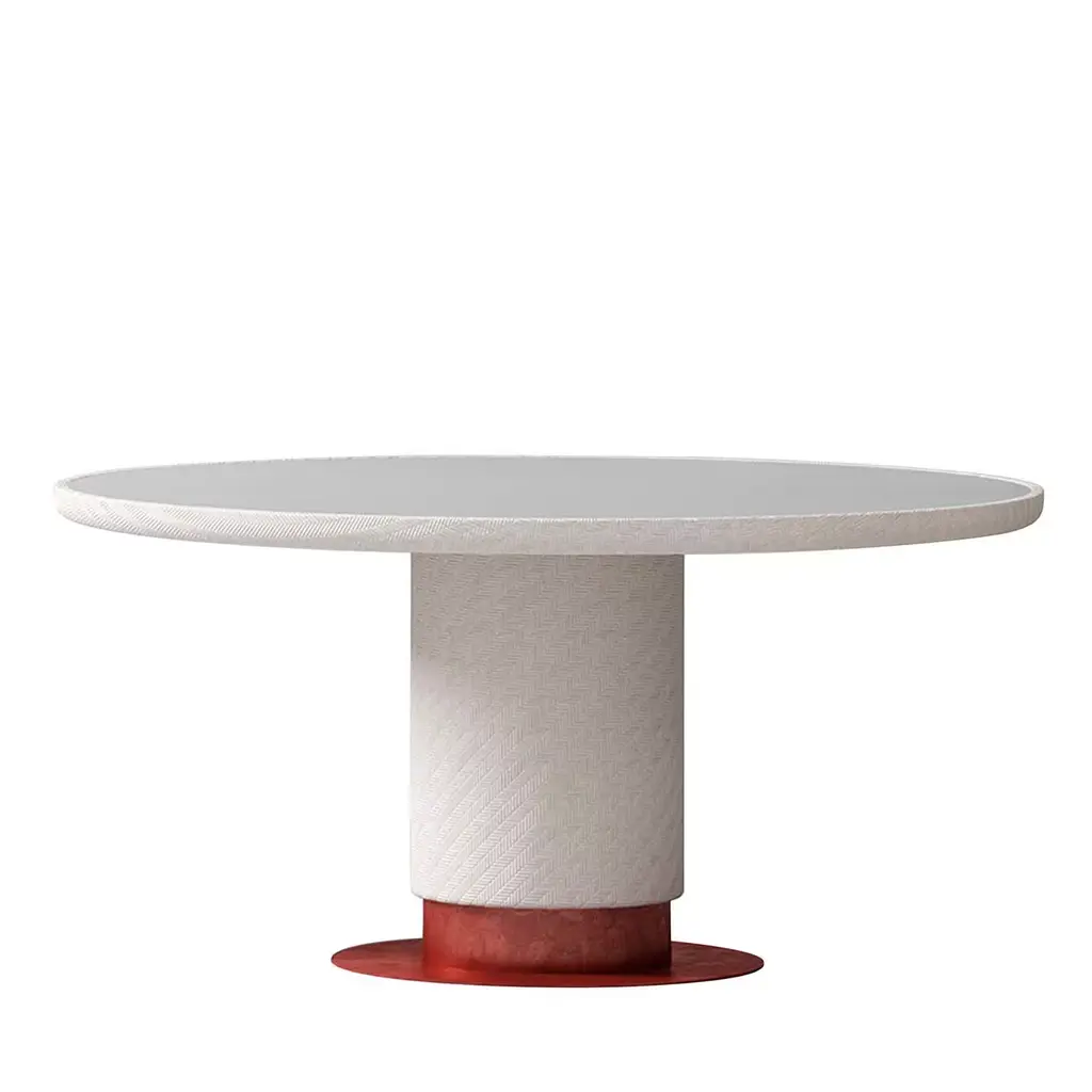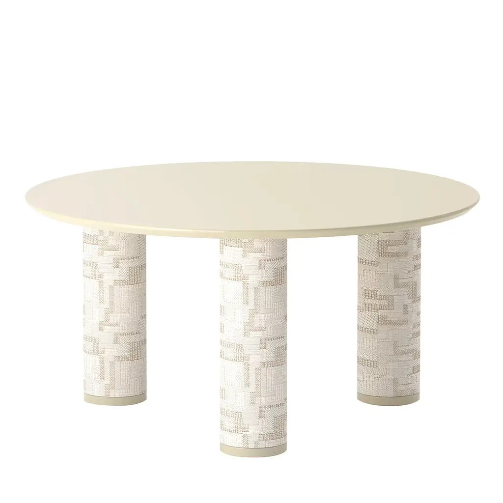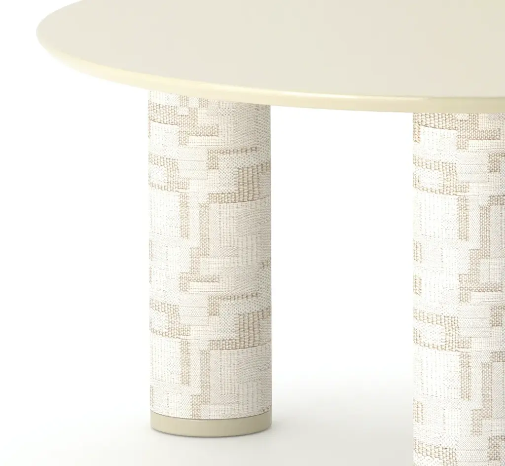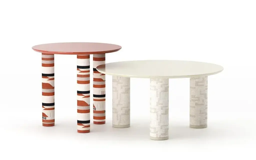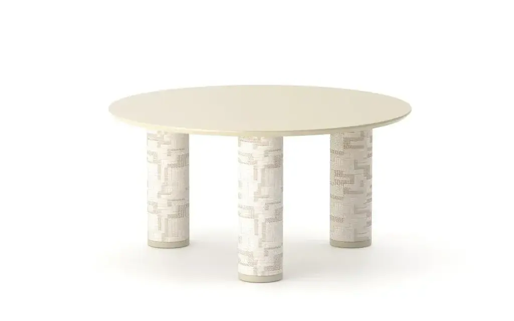Combo fabric / colour eneide fabric by dedar (indoor) / écru resin top; babelia fabric by dedar (indoor) / terra de canyon resin top; fr song-way fabric by dedar (indoor) / teal resin top; erbaluce fabric by dedar (indoor) / anthracite gray resin top; summertime fabric by dedar (outdoor) / écru resin top; basquette fabric by dedar (outdoor) / blue navy resin top. uma round 70 is a low table from the collection of the same name designed by ludovica+roberto palomba for p + c edizioni in spring 2022. featuring a circular resin top, uma round 70 puts the design accent on the table’s cylindrical pedestal legs upholstered in soft dedar fabrics — some intended for the indoor world, others outdoor — the names and textures of which hark back to echoes of distant world sand cultures: eneide, babelia e fr song-way merge references to abstract landscapes, bauhaus geometries or archetypal forms dear to the historical avant- garde. Or, on the opposite side, the lightness of summer with geometric textures with unequivocal names: summertime and basquette. Thus the textile selection made by ludovica + roberto palomba is not limited to covering the legs of the tables, but becomes both structure and decoration at the same time. composed of five tables of different shapes and sizes to be used alone, side by side, stacked, inside or outside the home, the tables of the uma collection are a hymn to versatility. Sober yet unexpected, elegant yet unconventional. Labeled by maker