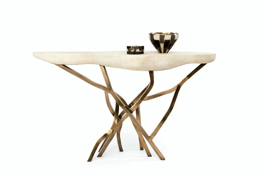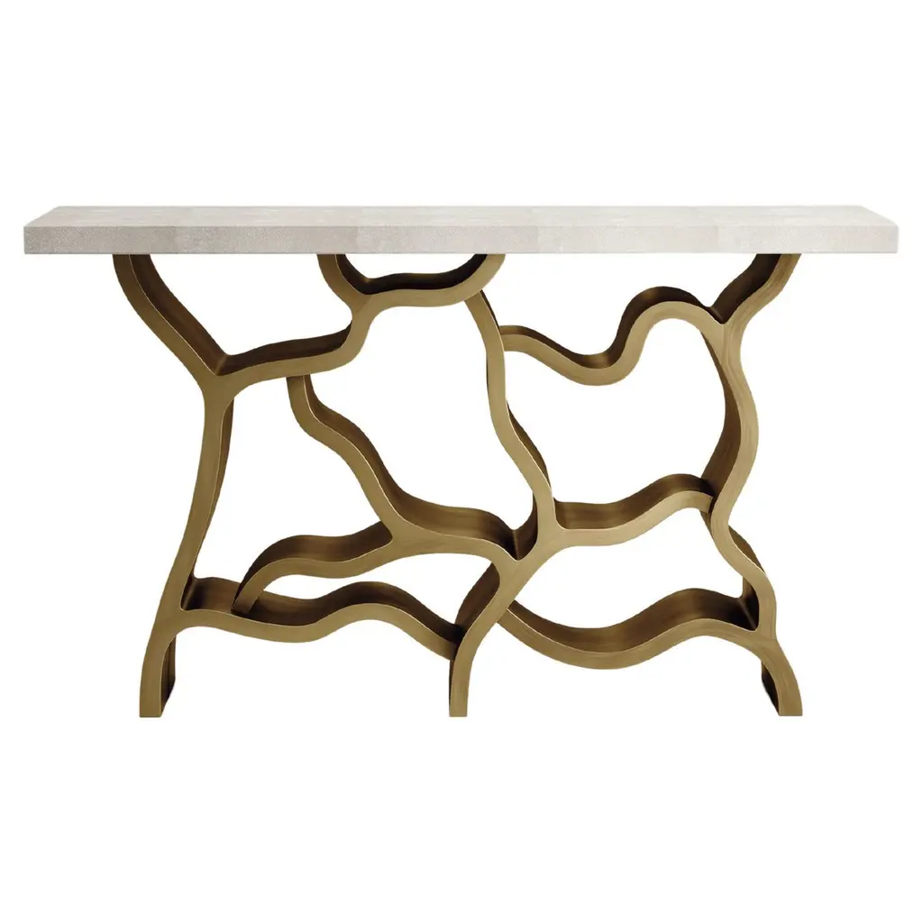 Acacia Console Table In Cream Shagreen And Bronze-Patina Brass By R&y Augousti