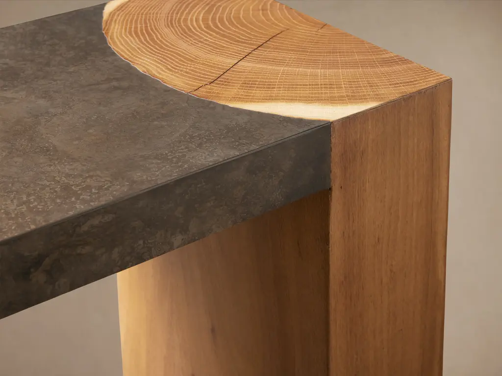 Made from panels of steel left out in the elements to age, Acacius is one of our signature collections handcrafted by a family of imaginative artists in Mexico. After developing a patina of stains and speckles, each panel is molded around the organic silhouette of reclaimed yukas, creating a finished piece as unique as the trees themselves.