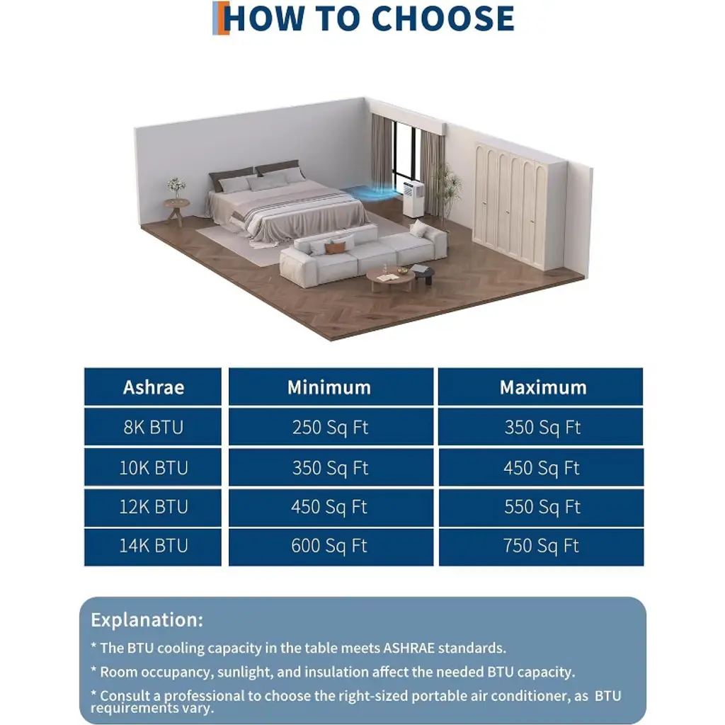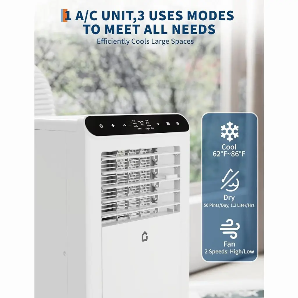 Acekool’s 10,000 BTU portable air conditioner with heat provides a full-service comfort solution for rooms up to 450 square feet. This 4-in-1 unit cools, heats, dehumidifies, and circulates air using a user-friendly LED panel and remote, so you can enjoy the ideal temperature every day of the year. With a broad temperature range (cooling 61–86°F, heating 55–77°F), it’s perfect for bedrooms, offices, or living rooms that need flexible climate management. Quiet in operation—especially in sleep mode—and equipped with a 24-hour timer and auto swing function, Acekool’s portable AC adapts to your schedule for efficient comfort. The dehumidifier removes up to 50 pints of daily, helping create a healthier indoor space. Heavy-duty wheels and a hidden handle make it easy to move, while the window kit allows for fast installation in most sliding windows. Unit dimensions are easy to fit in most spaces. Available in black or white, this Acekool portable air conditioner and heater provides efficient, convenient, and versatile comfort for every season in your home.