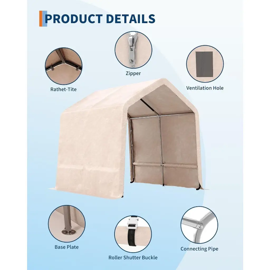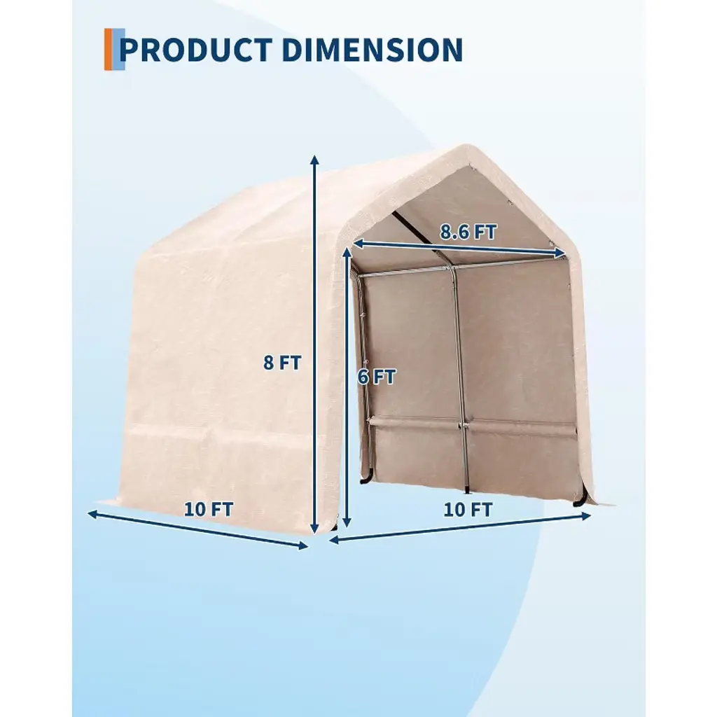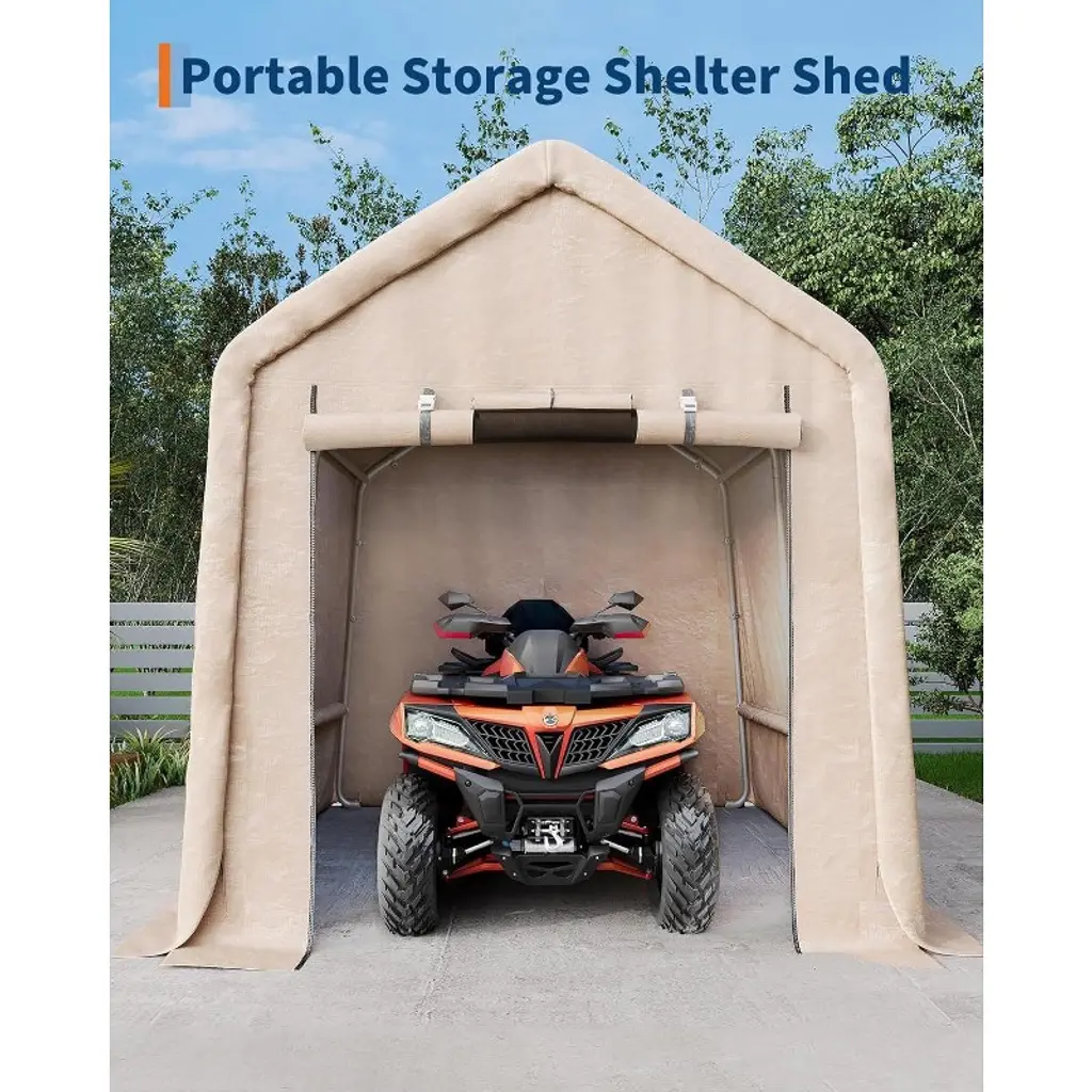 Acekool 10x10ft Outdoor Portable Storage Shed, Roll-up Door, Heavy-duty Waterproof Pe Tarp, Uv-resistant Shelter For Garden, Tools, Motorcycles,beige