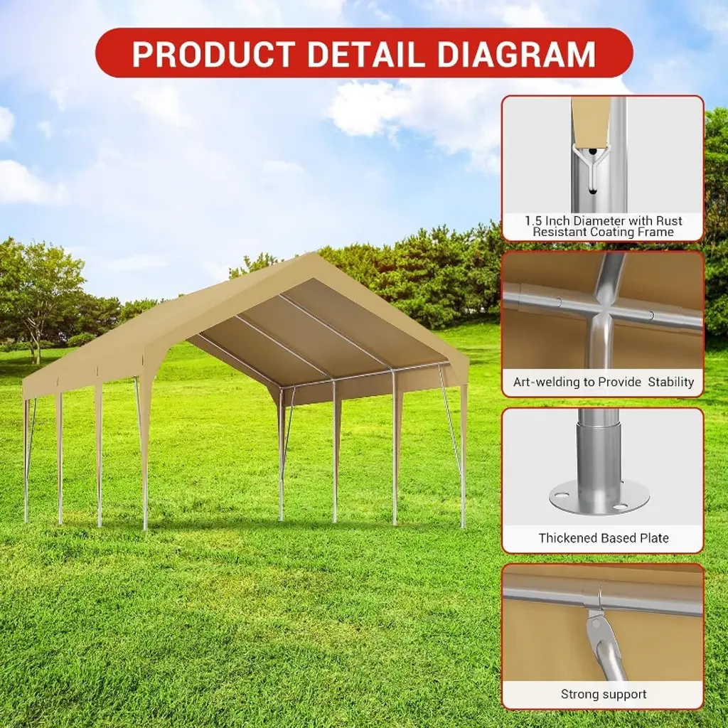 Acekool 10x20ft Heavy Duty Carport Canopy, Waterproof Uv Resistant Portable Shelter For Car, Vehicle, Outdoor Storage, Yellow
