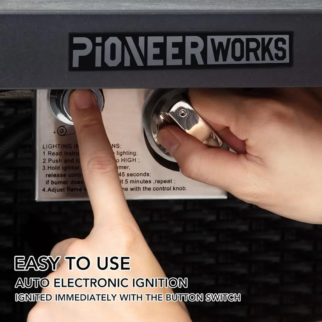 This fire table creates a welcoming centerpiece for outdoor gatherings. The rectangular design provides ample space for seating around the flames. Works well for both warmth and entertainment on patios or decks. Features adjustable flame controls and protective covers. The dual-door design allows easy propane tank access. Includes weather protection for year-round use when not in flames. Measures 44" long x 25" wide x 26" high.