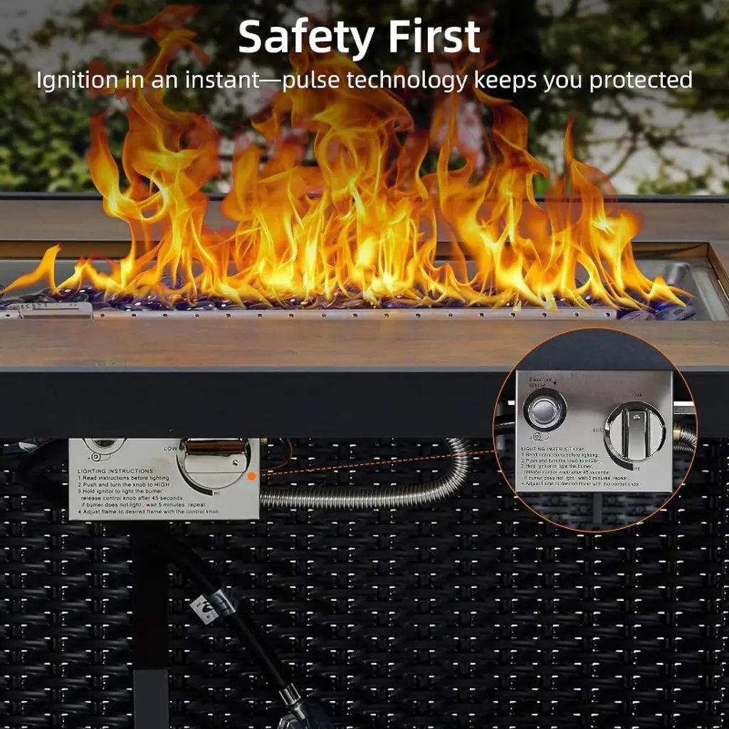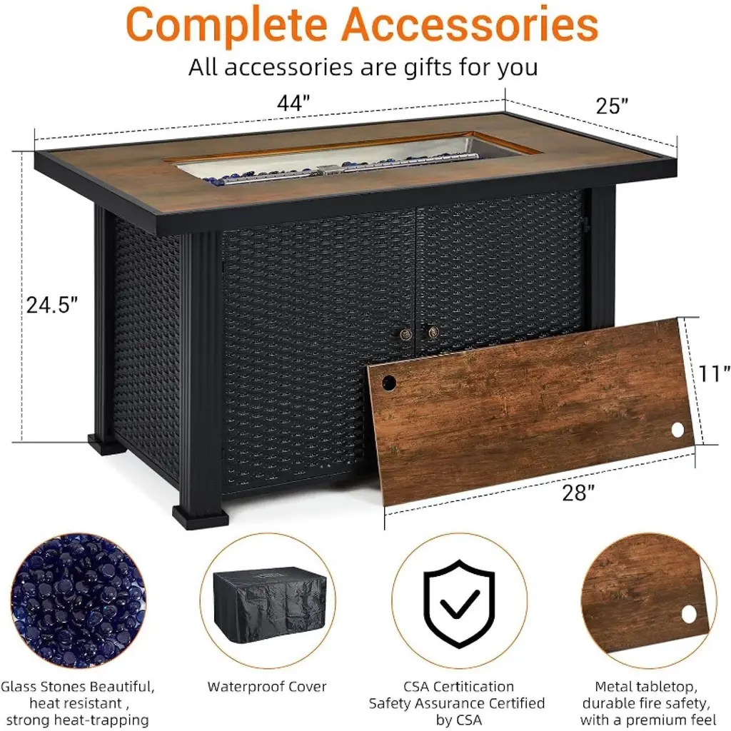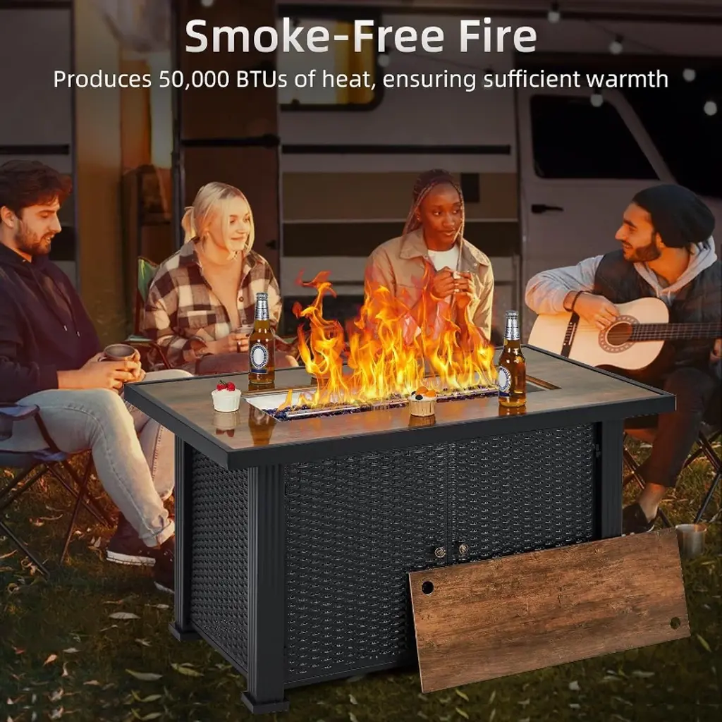 Acekool 44" Rectangular Propane Fire Table - 50,000 Btu Outdoor Firepit With Rain Cover & Dual Doors