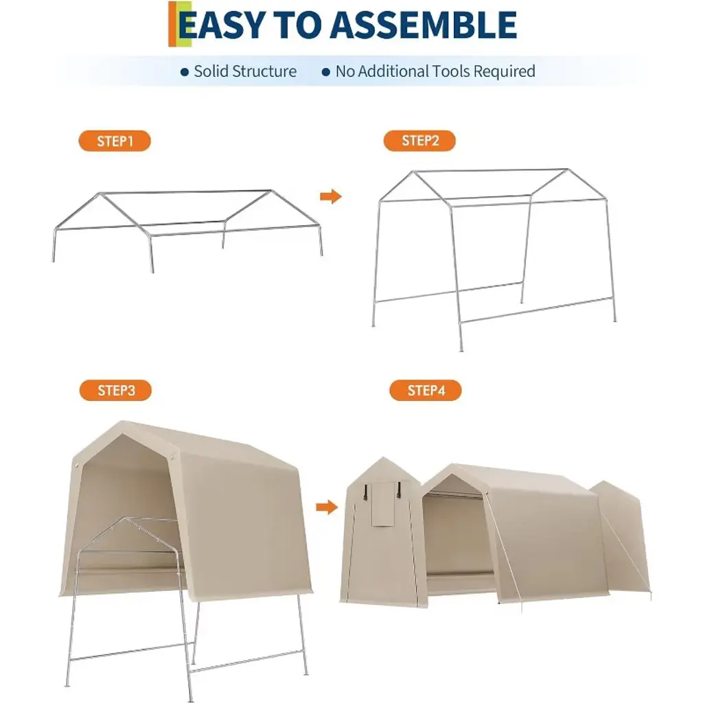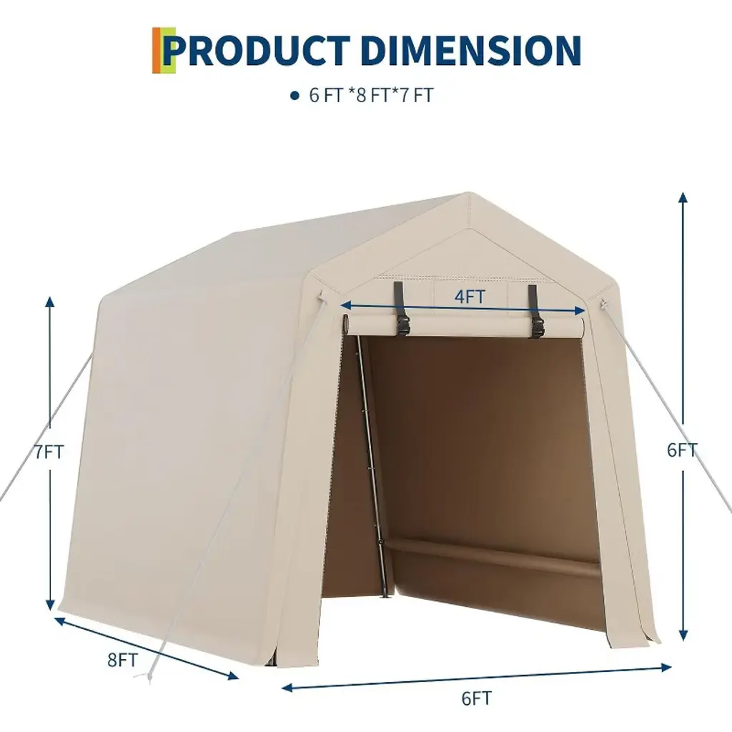 Acekool 6X6 Ft Portable Outdoor Storage Shed, Dual Roll-up Zipper Doors, Heavy-duty Waterproof Pe Tarp, Uv-resistant Shelter For Tools, Beige