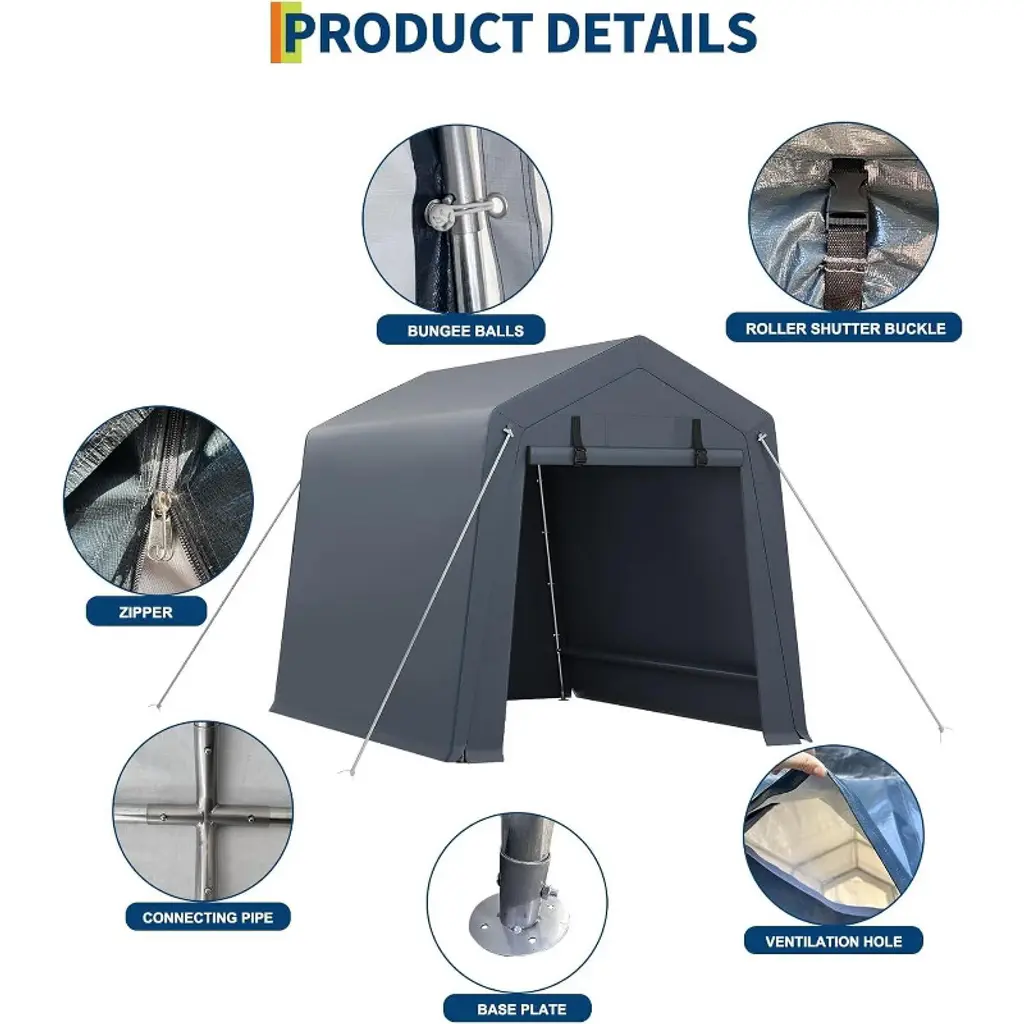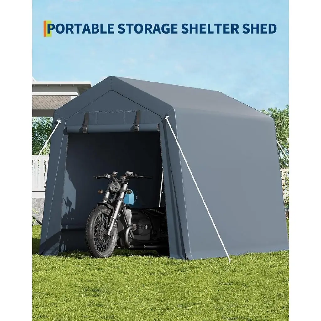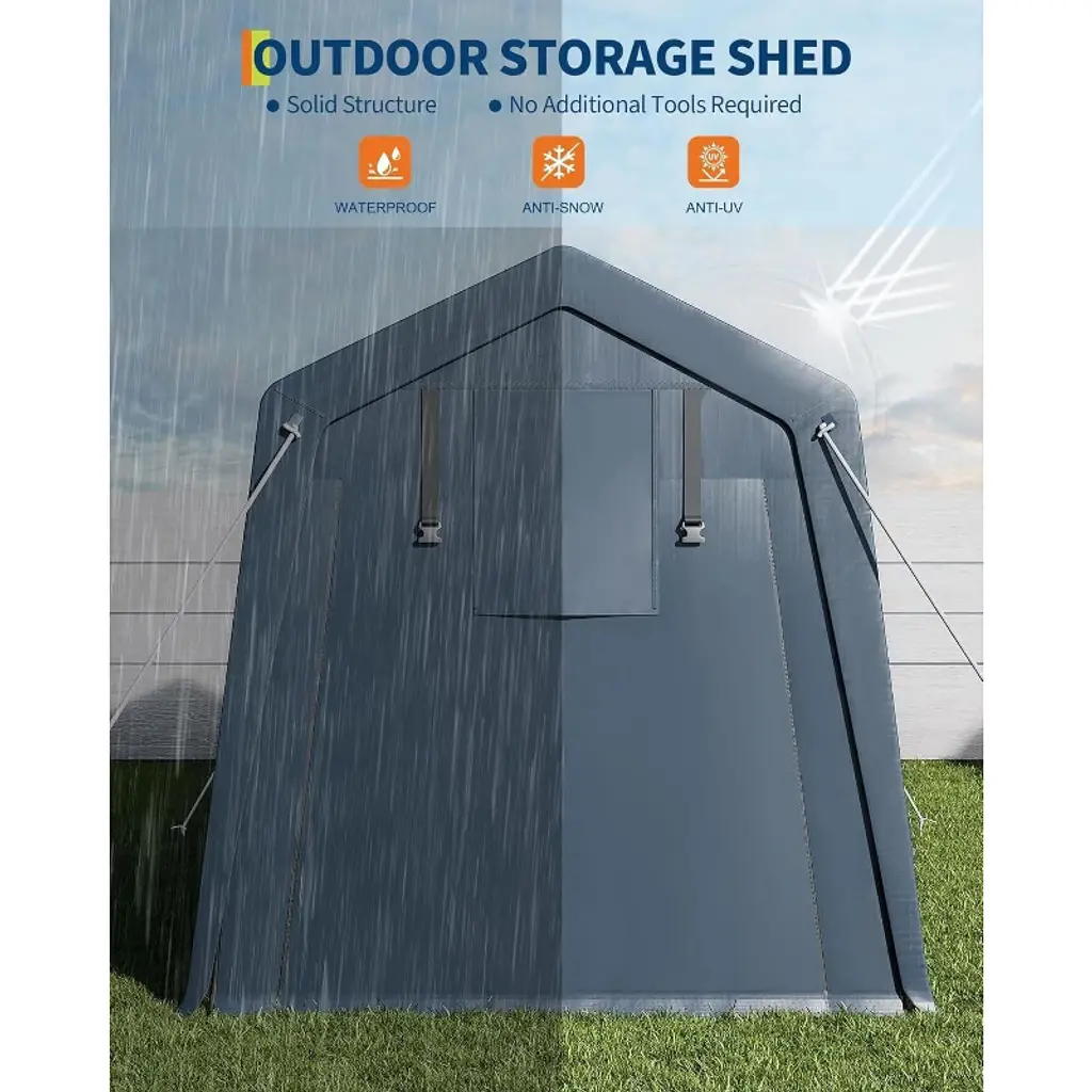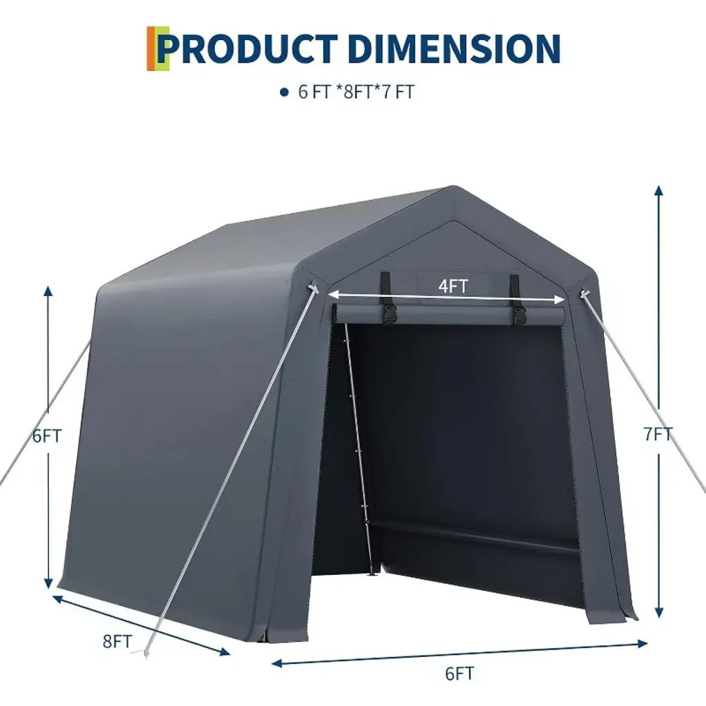 Acekool 6X8 Ft Portable Outdoor Storage Shed, Dual Roll-up Zipper Doors, Heavy-duty Waterproof Pe Tarp, Uv-resistant Shelter For Tools, Gray